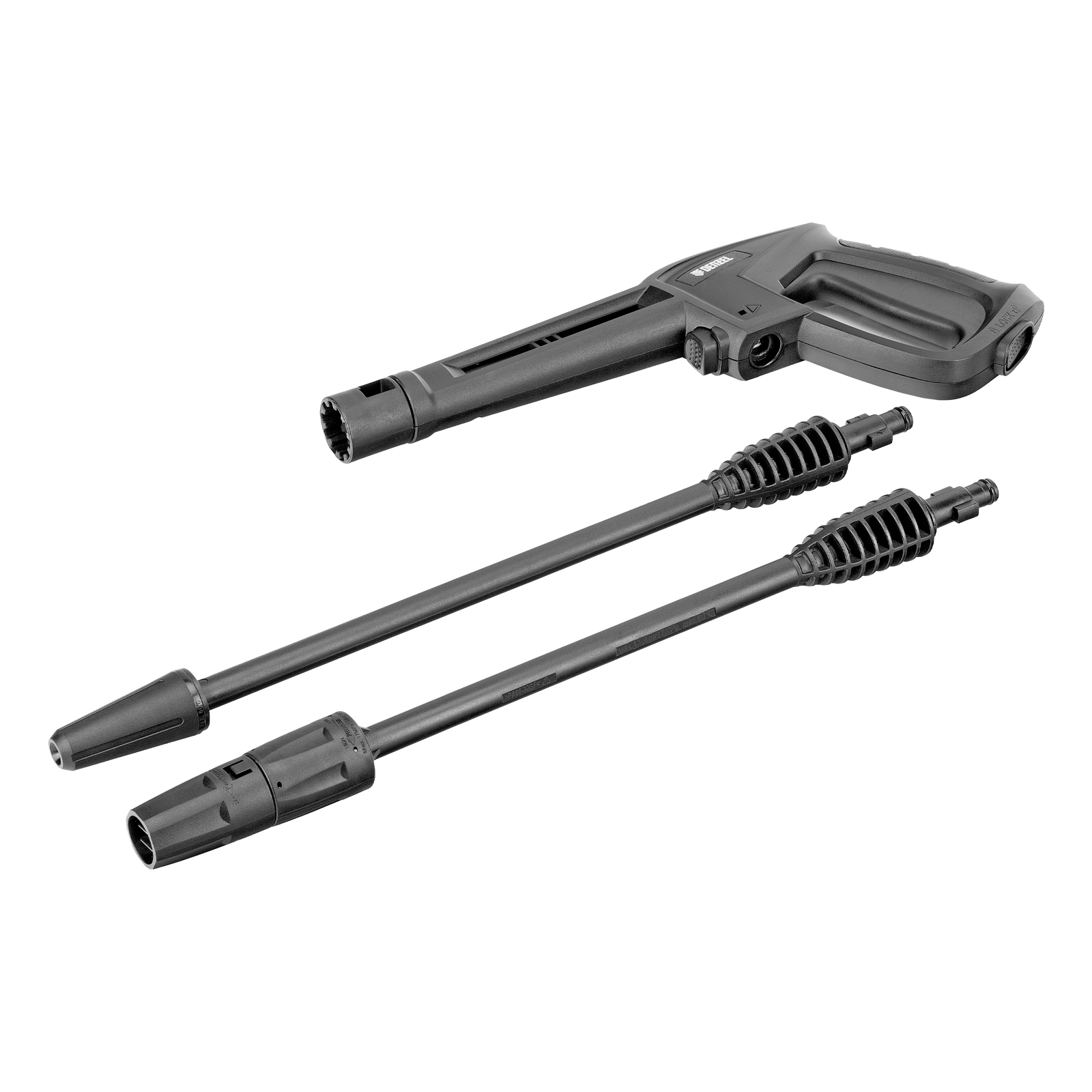 - Удобное хранение — конструкцией предусмотрены держатель пистолета и кронштейн для сетевого кабеля.