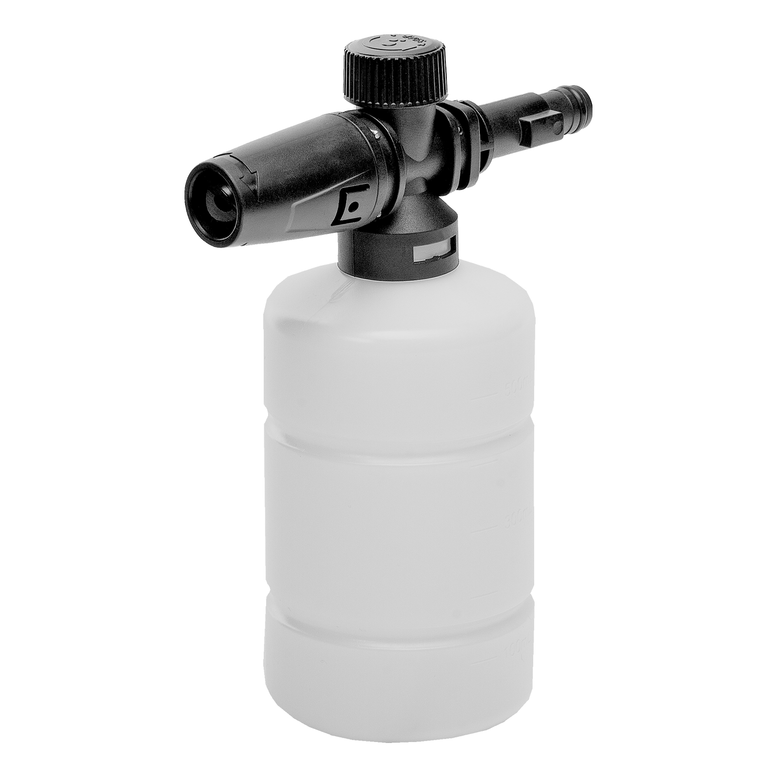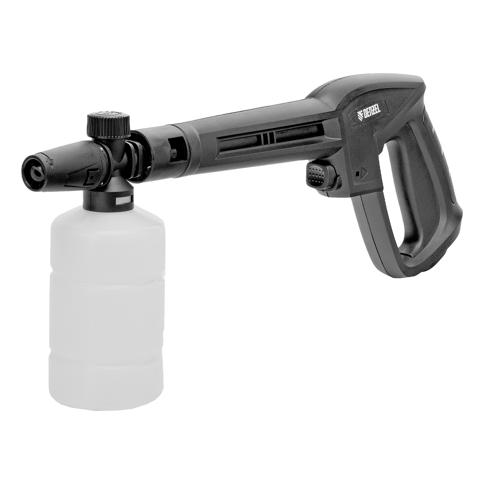 - Использование моющего средства — машина имеет встроенный бачок, также можно подключить внешний пеногенератор, входящий в комплект поставки.
