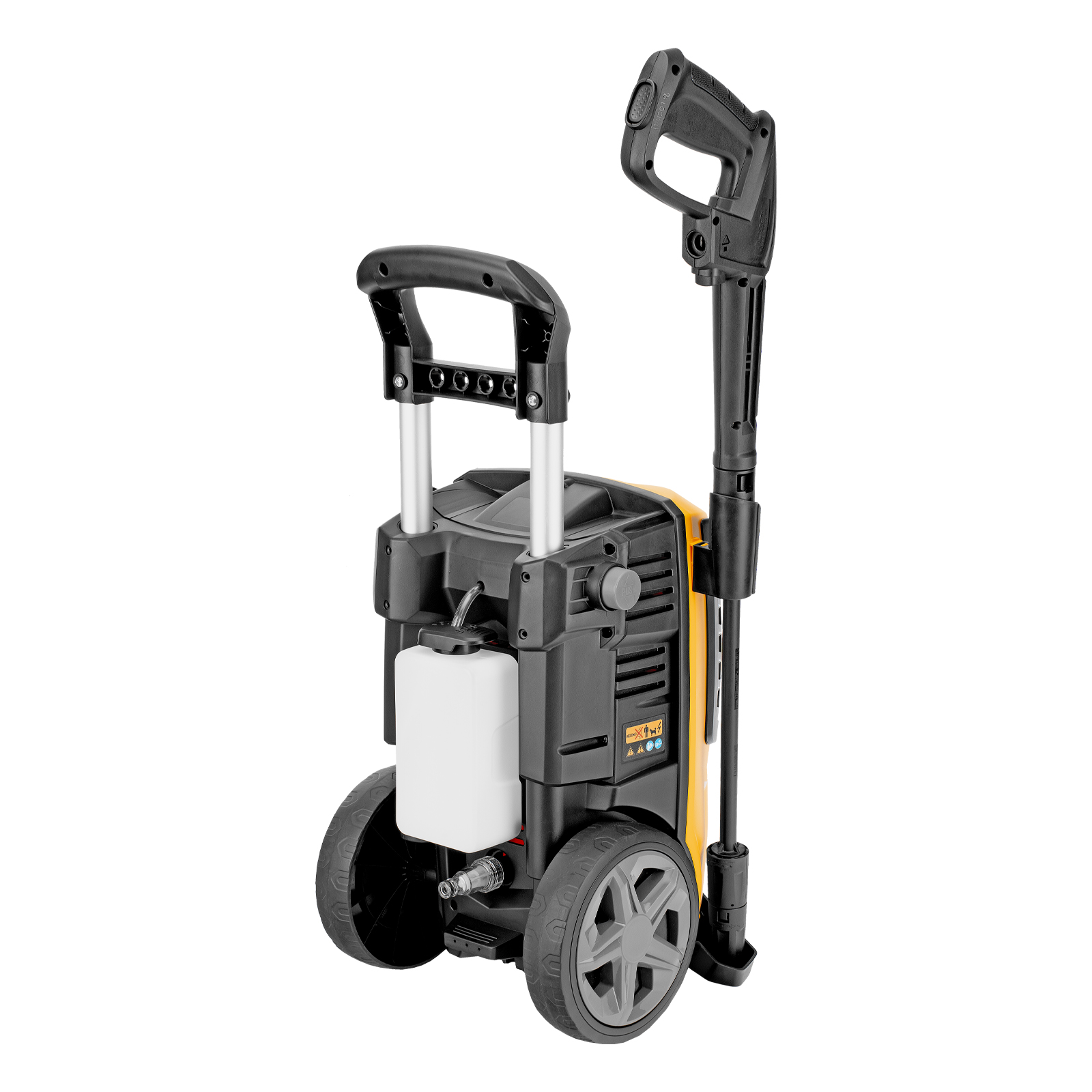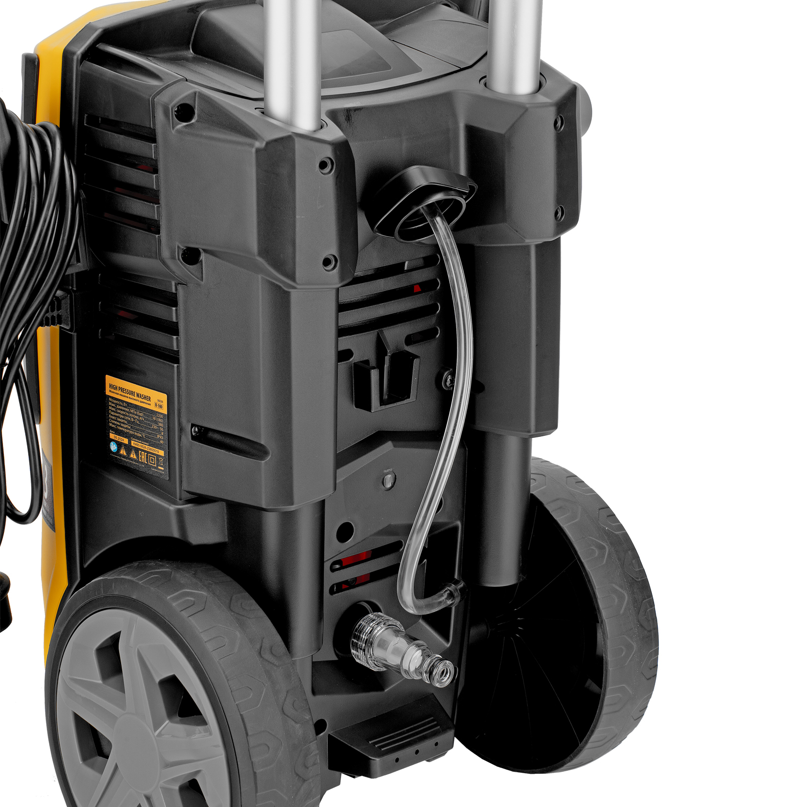 Колесная моечная машина высокого давления Denzel R-180 58238 мощностью 2200 Вт и производительностью 380 л/ч подает струю воды под давлением 180 бар и служит для очищения поверхностей. Позволяет быстро привести в порядок садовые дорожки, удалить пыль и грязь с фасада здания, автомобиля, велосипеда или мотоцикла, отмыть садовый инвентарь. Моечная машина подключается к водопроводу, а при его отсутствии может забирать воду из любого резервуара, работая в режиме самовсасывания. Устройство пригодится для поддержания порядка на загородном участке.