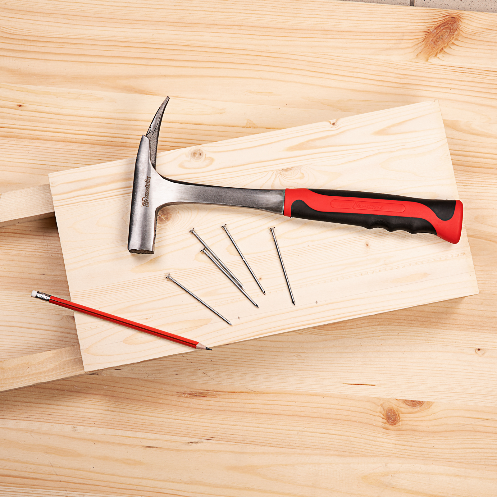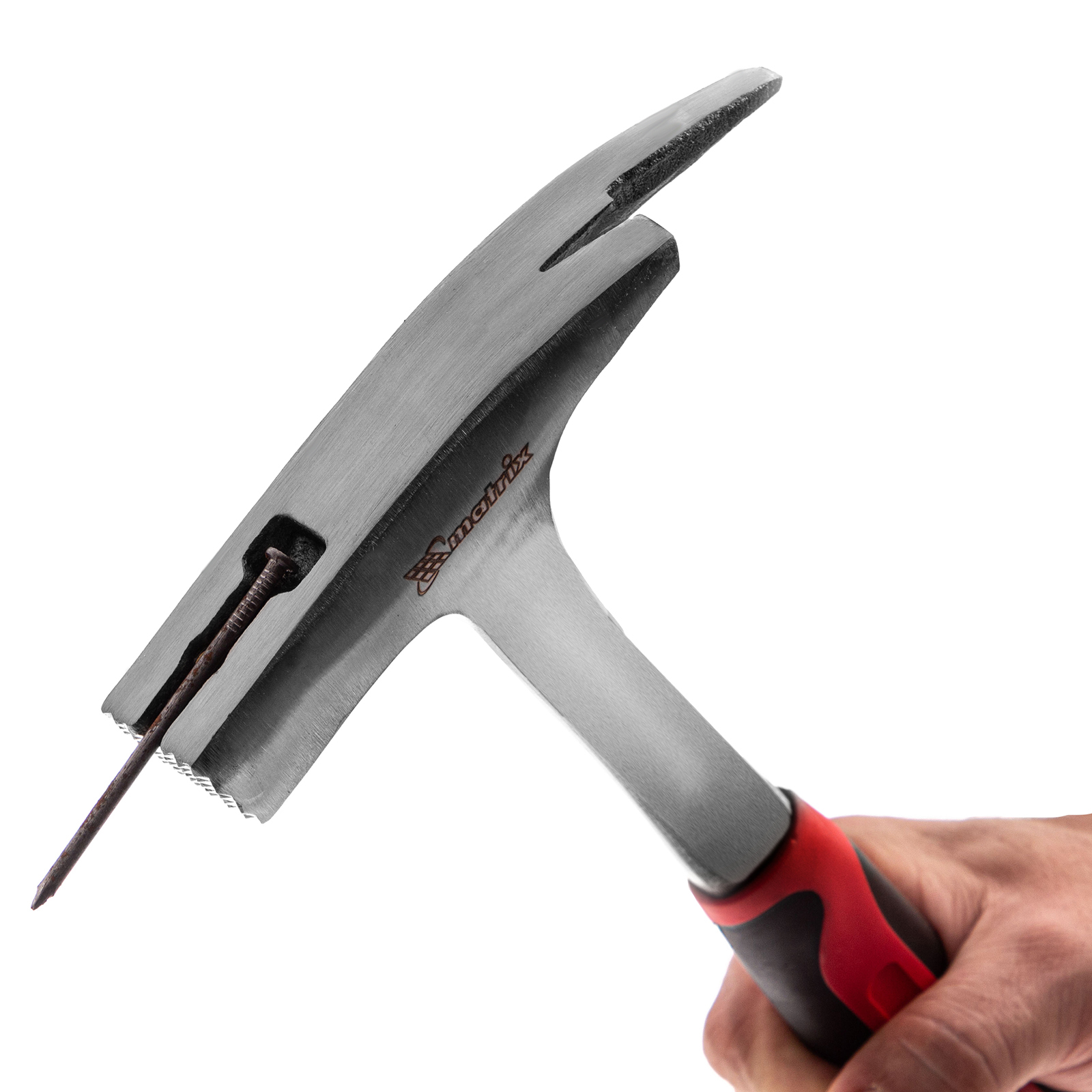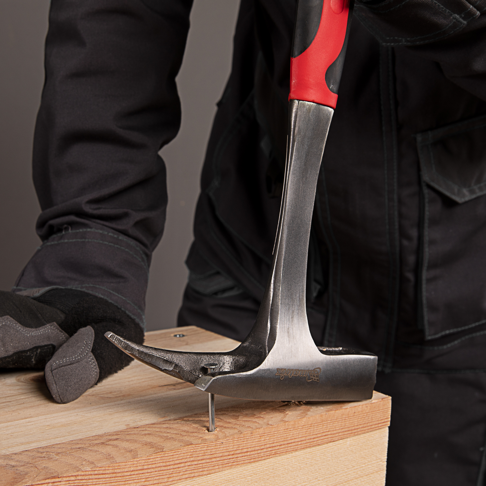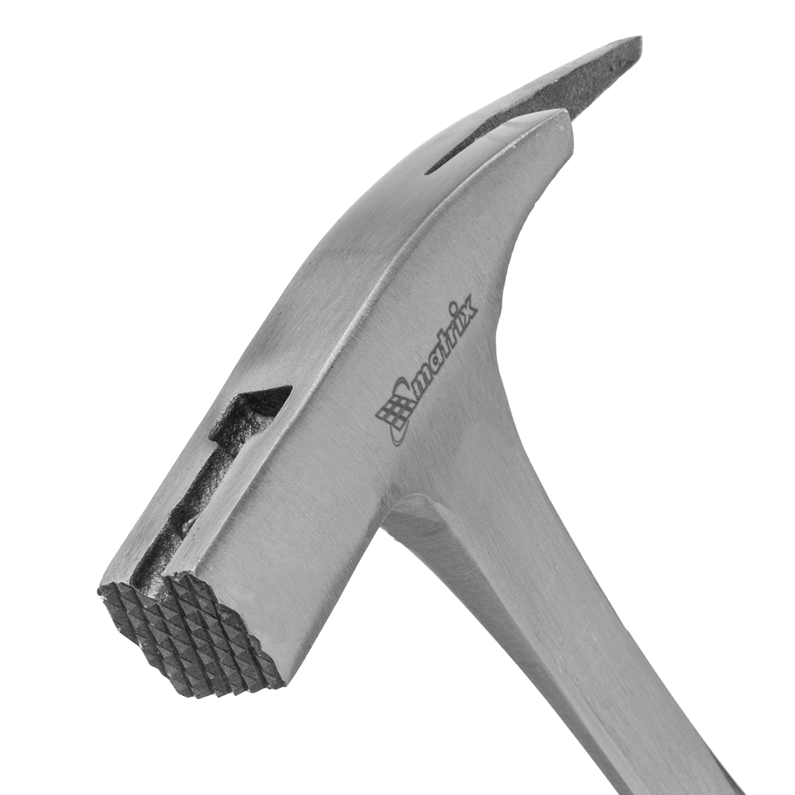 Цельнометаллический молоток кровельщика Matrix 10620 с головкой весом 600 г и двухкомпонентной рукояткой — специализированный инструмент для кровельных работ. Насечки на рабочей поверхности бойка предотвращают соскальзывание, если удар по гвоздю нанесен под углом. Противоположная часть головки представляет собой заостренный клин для пробивания отверстий в листовом металле и отгибания кромок. Гвоздодер позволяет вытягивать неправильно забитые гвозди для их выпрямления.