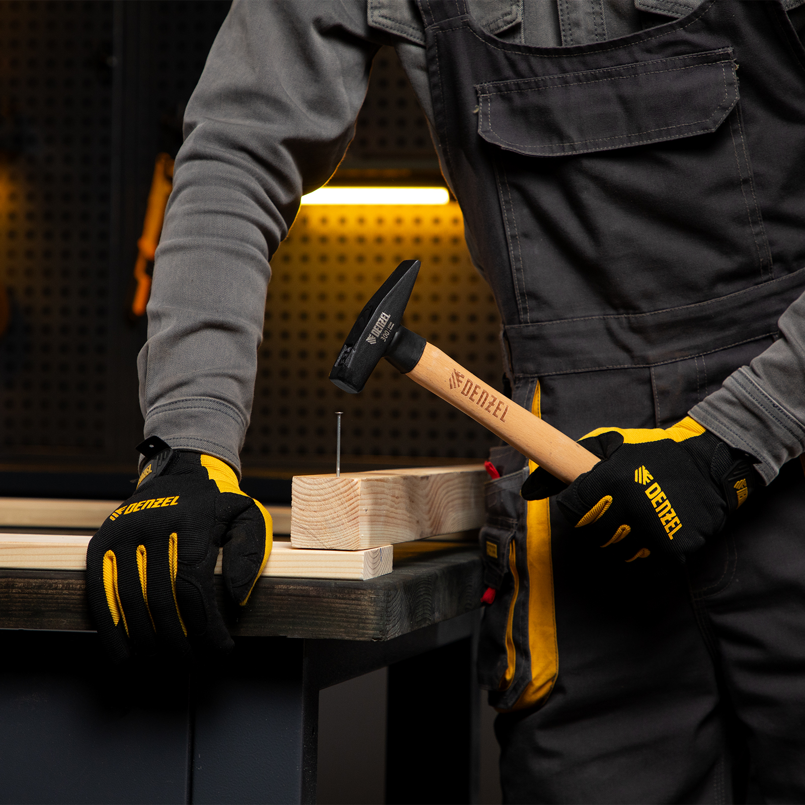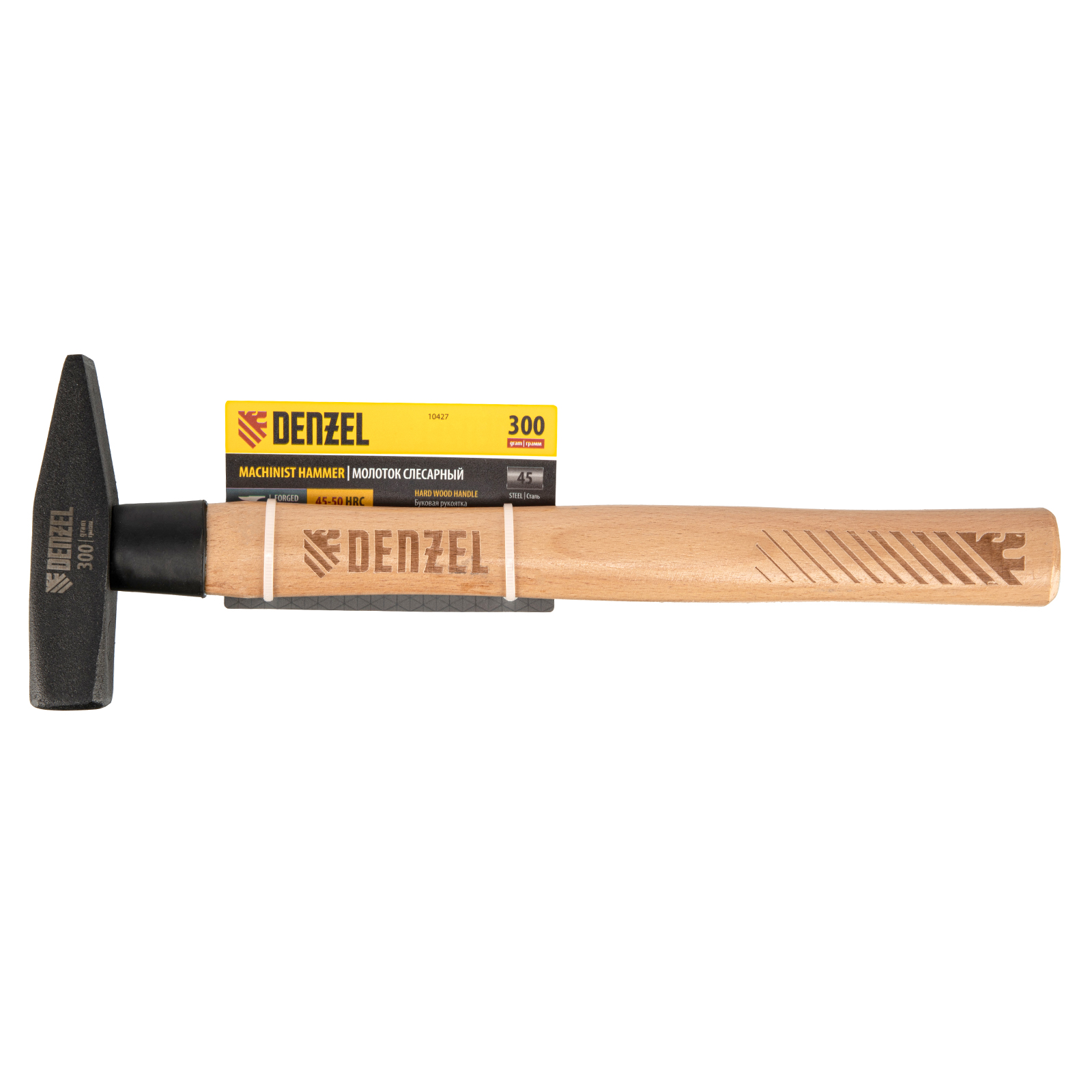 Молоток слесарный, 300 г, кованый квадратный боек, буковая рукоятка Denzel