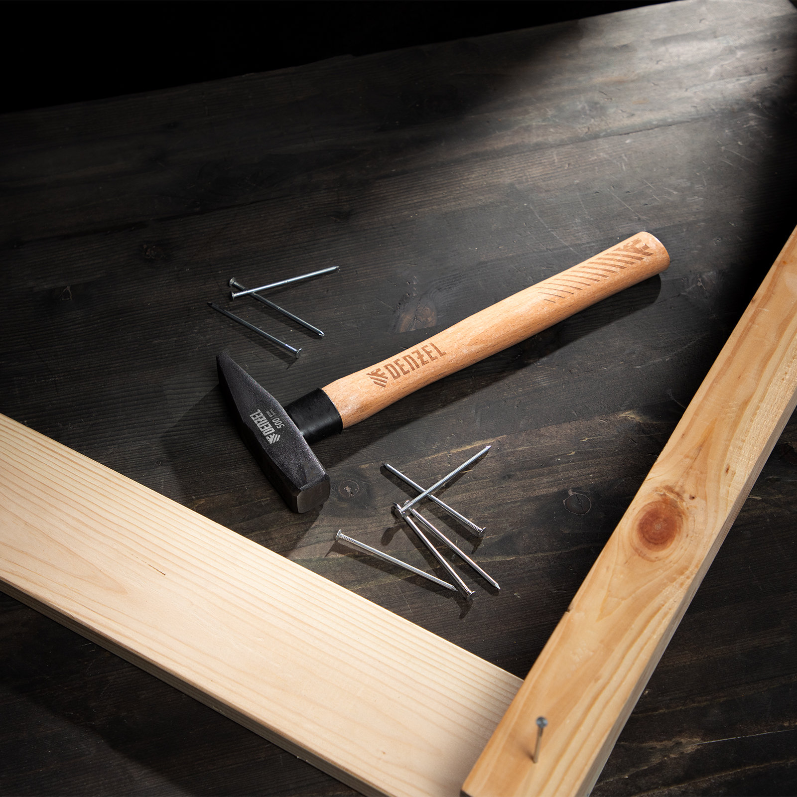 Молоток слесарный, 500 г, кованый квадратный боек, буковая рукоятка Denzel