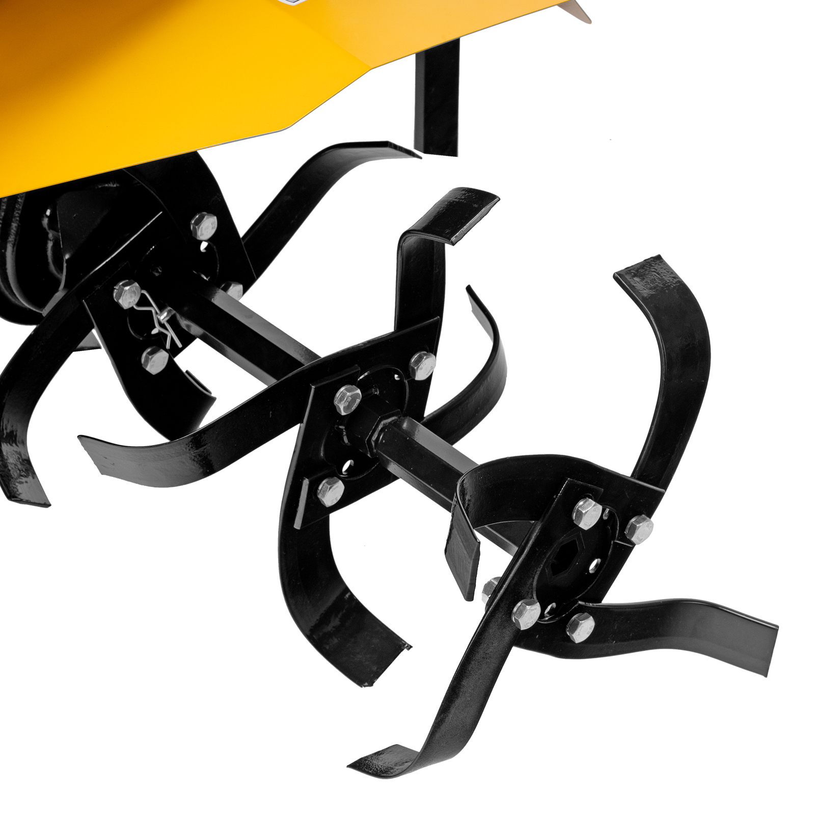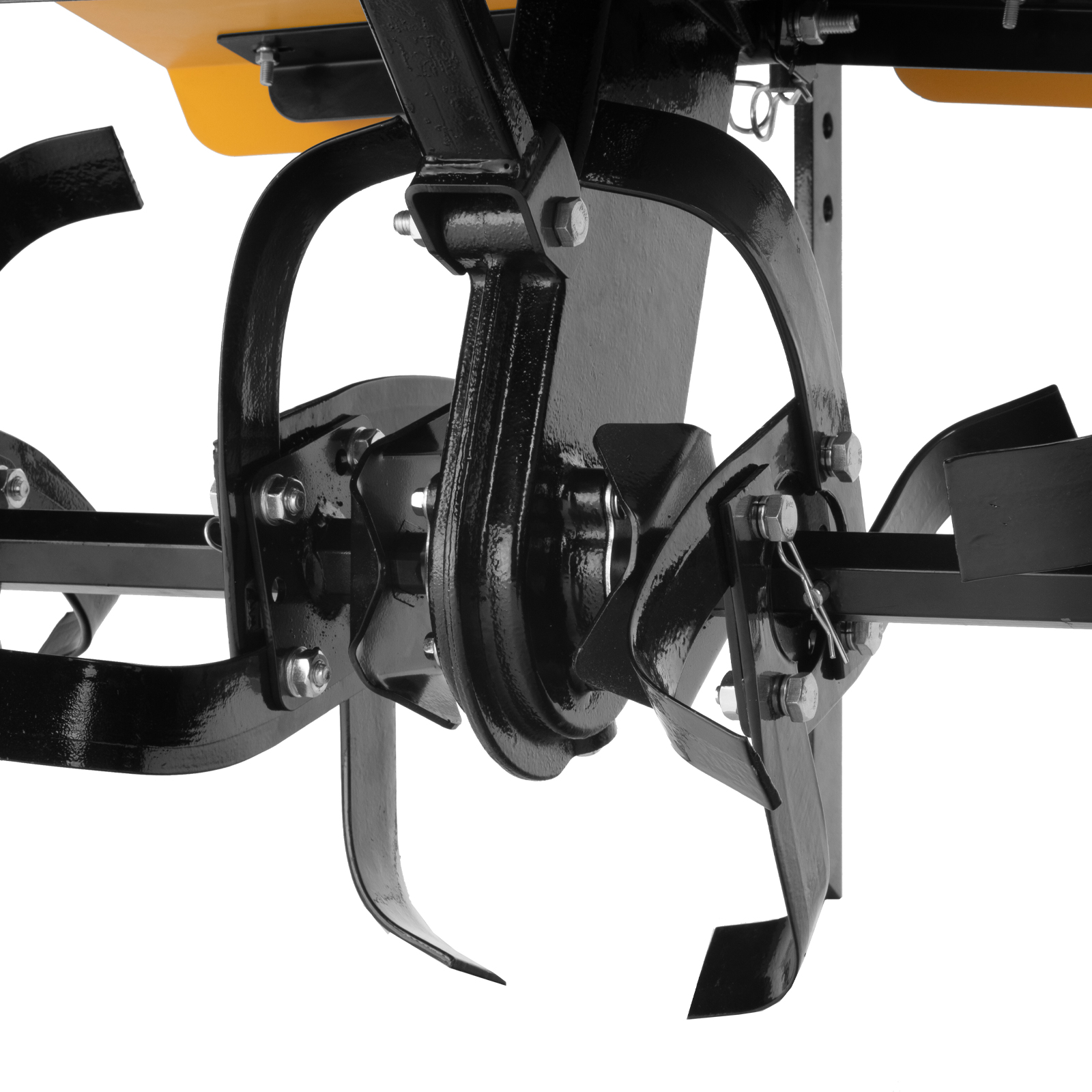 - Настраиваемая глубина вспашки — степень погружения фрез в почву можно задать, отрегулировав сошник по высоте.