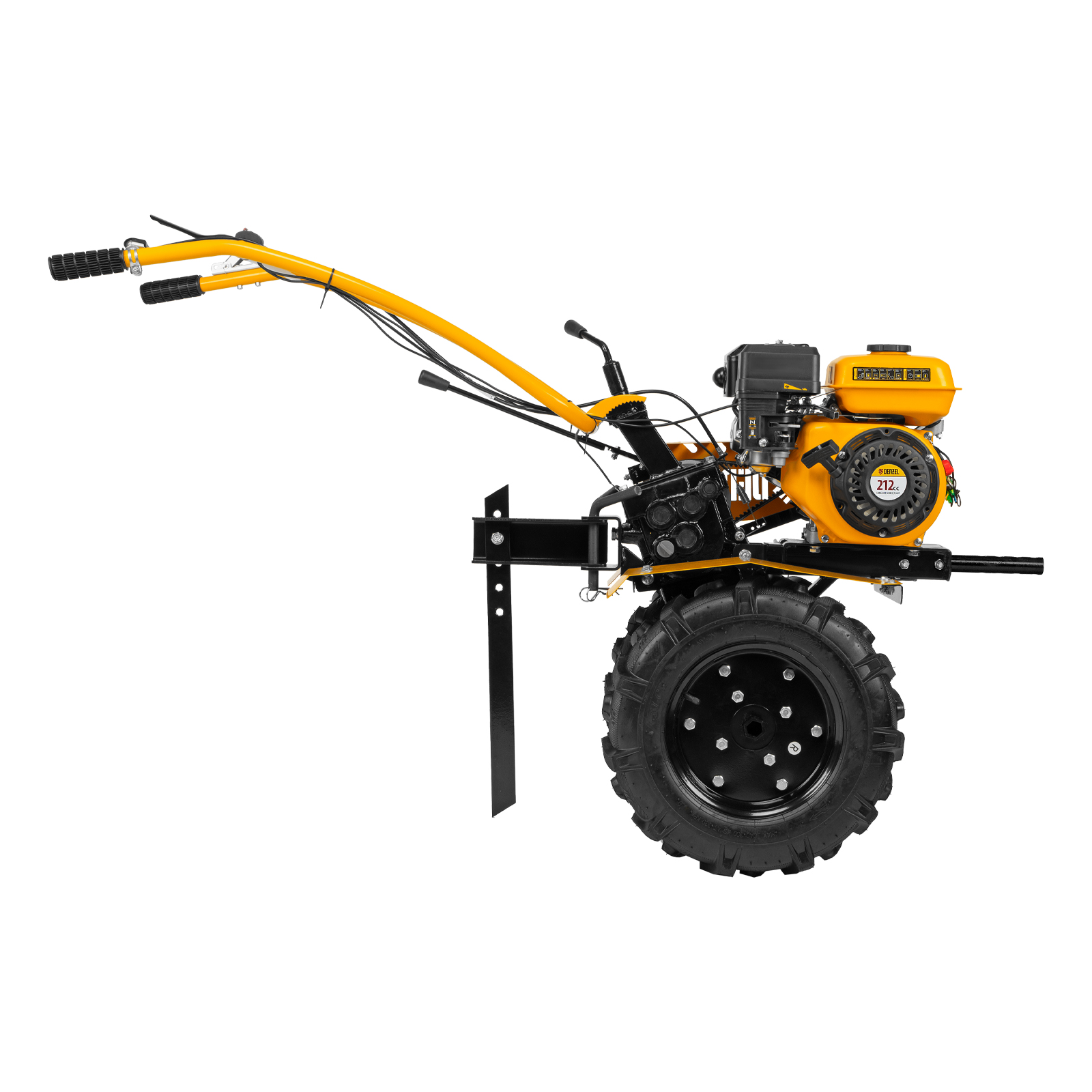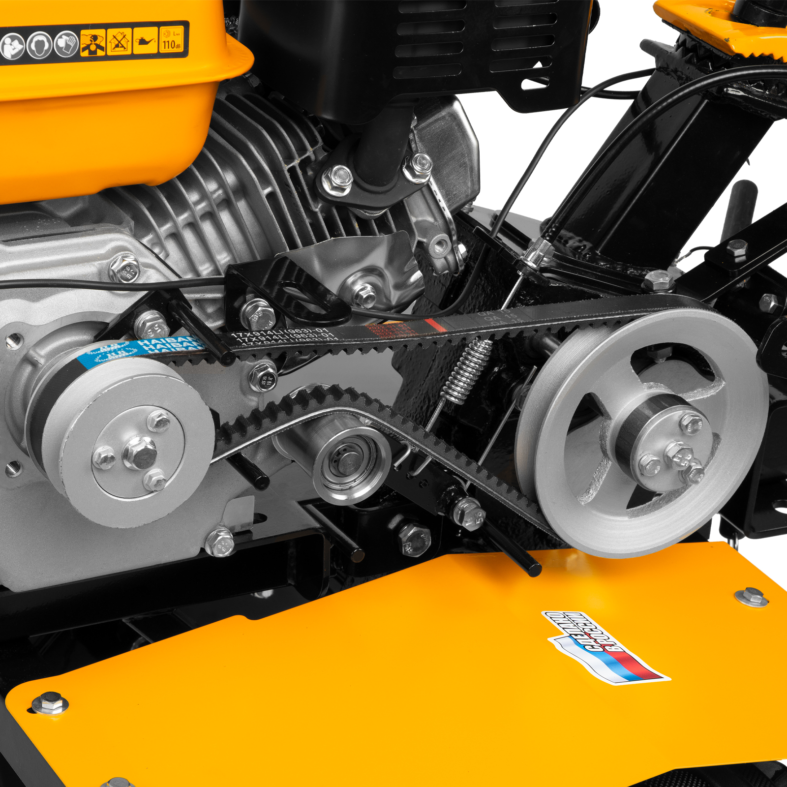 - Удобная работа — основные элементы управления расположены на рукоятках, для включения сцепления и регулировки оборотов двигателя не нужно наклоняться.