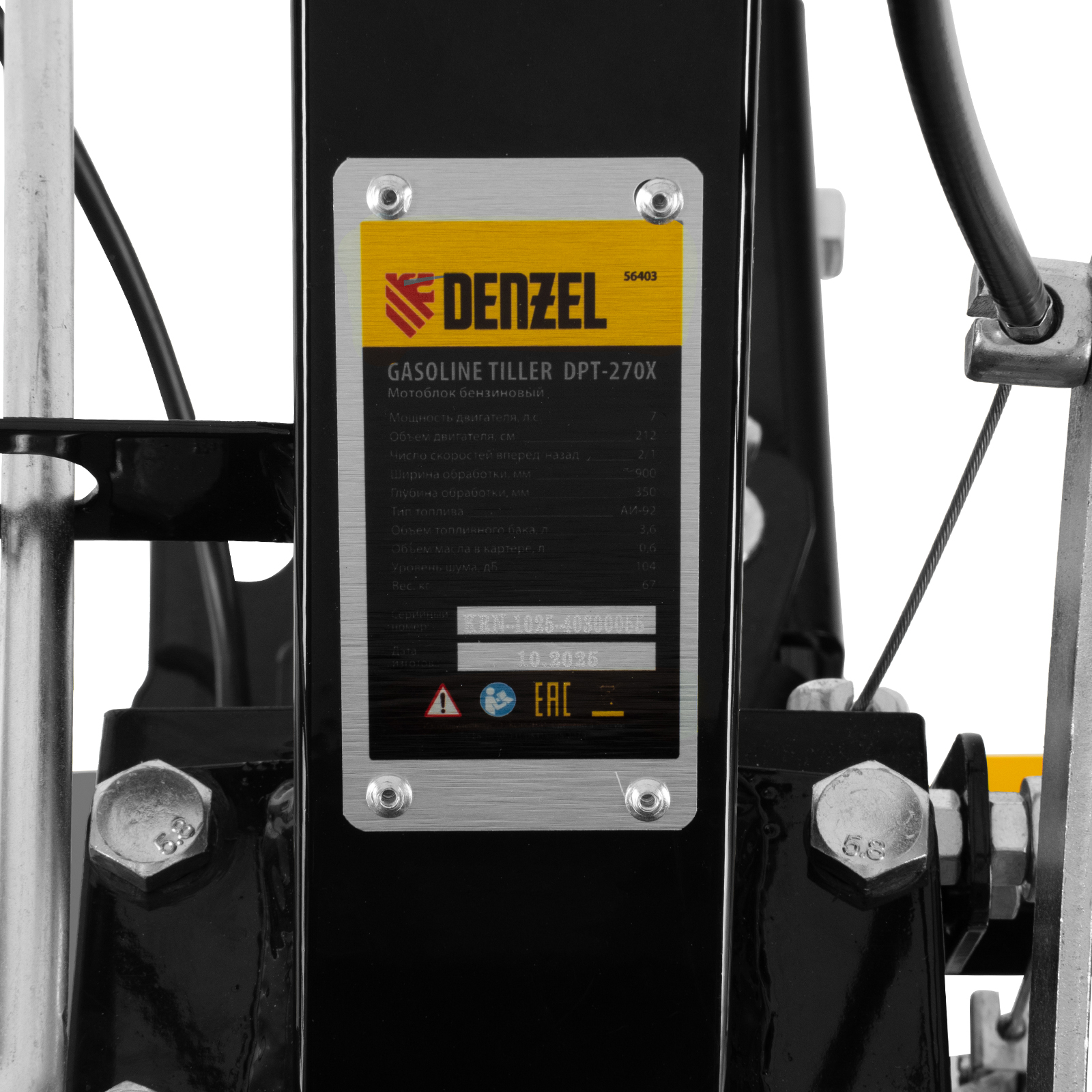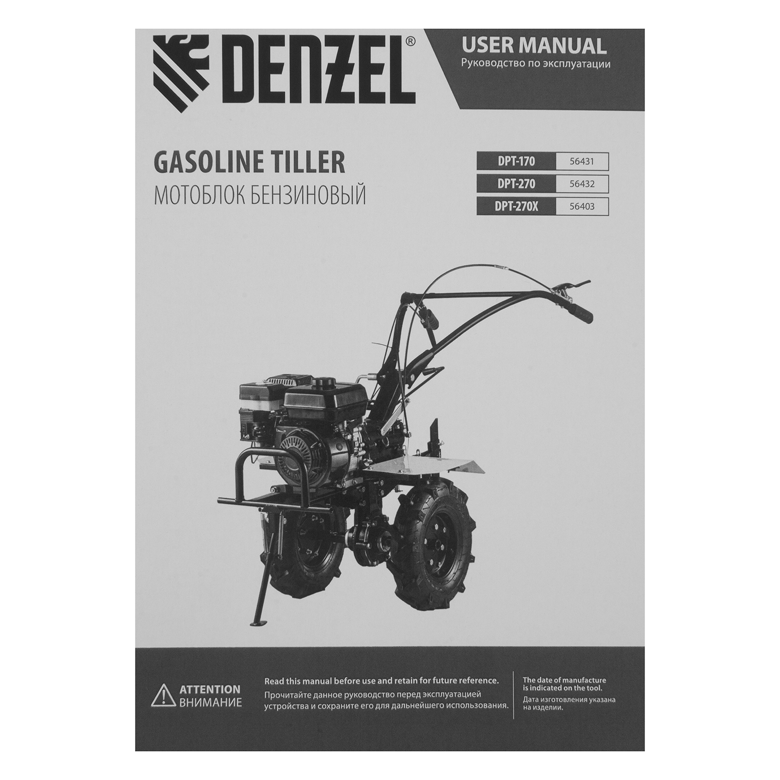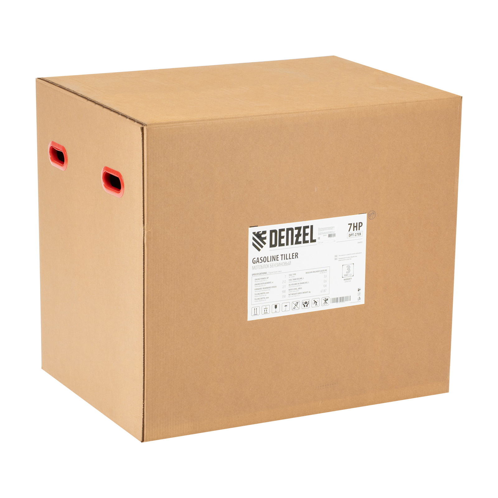 Мотоблок DPT-270X, 7 л.с, дисковое сцепление, ширина 90 см, глубина 35 см, фрез 3 х 4, ВОМ, передачи 2В/1Н Denzel