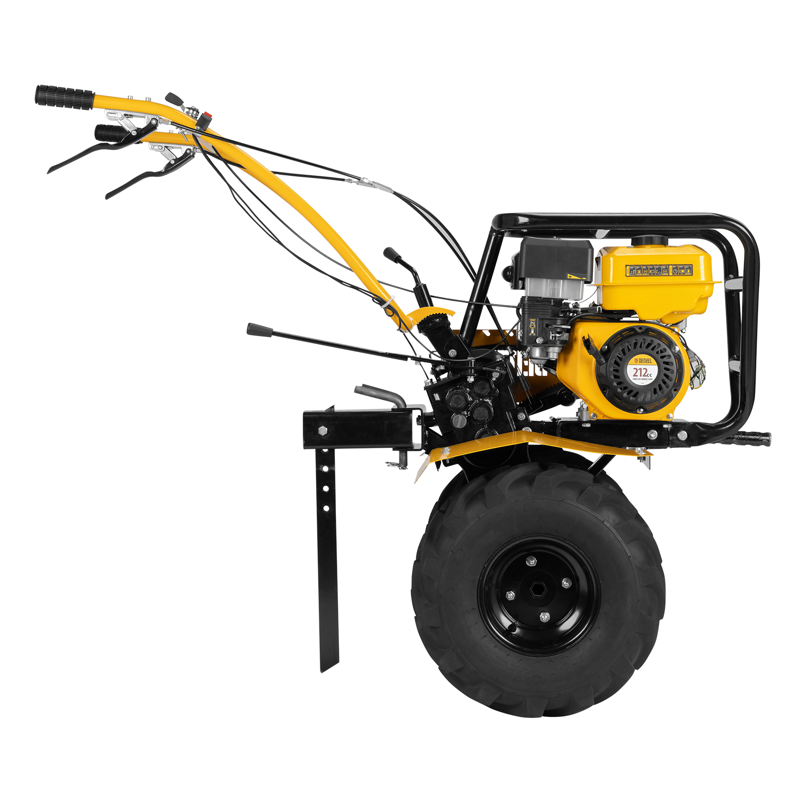 Мотоблок Denzel DPT-470S-PRO 56445 с ременным сцеплением, двигателем объемом 212 см3 и мощностью 7 л.с., с коробкой передач 4 вперед/2 назад и шкивом отбора мощности, комплектуется 24 фрезами (3х4). Предназначен для выполнения земляных работ: прополки, вспахивания, боронования грунта, перевозки грузов и т.д.