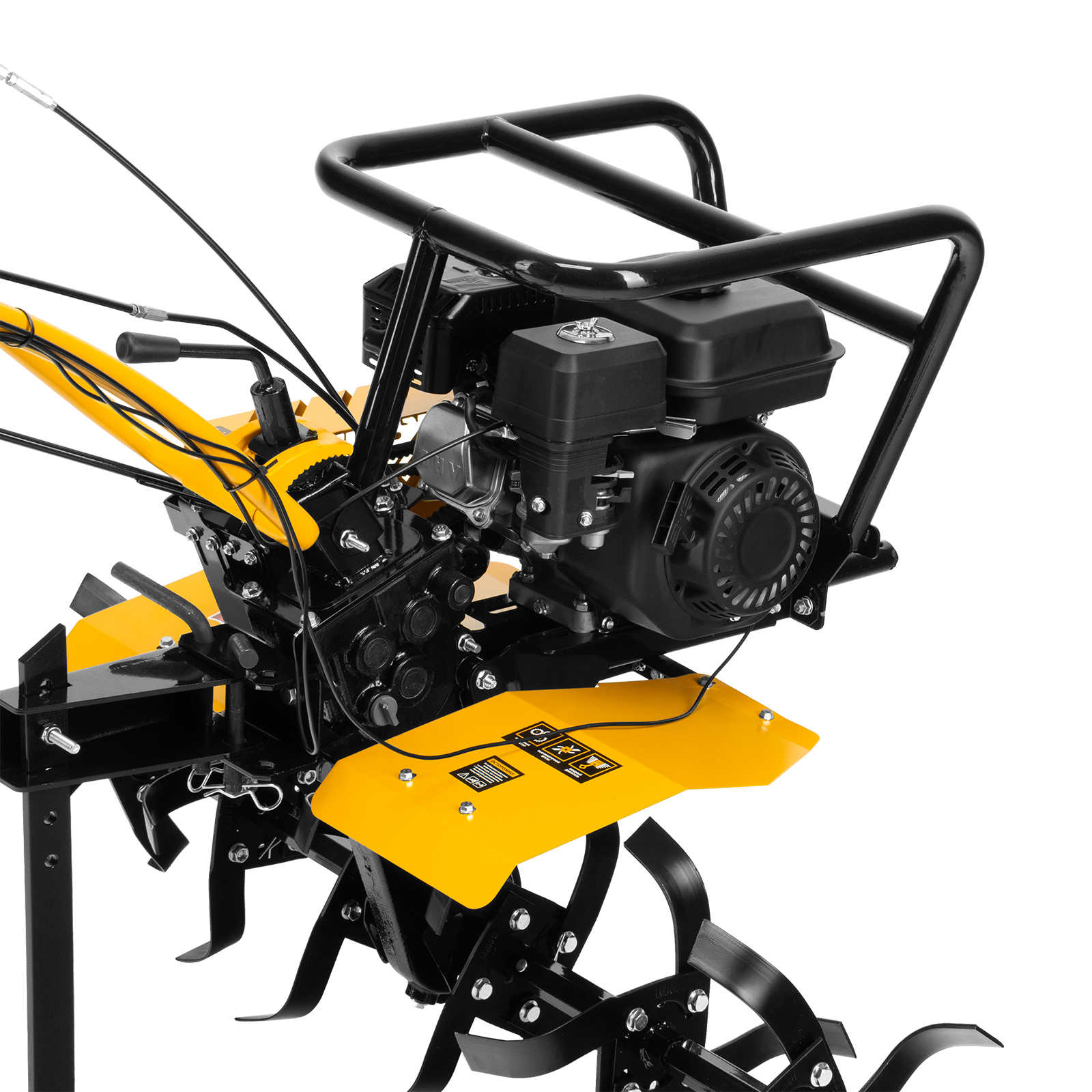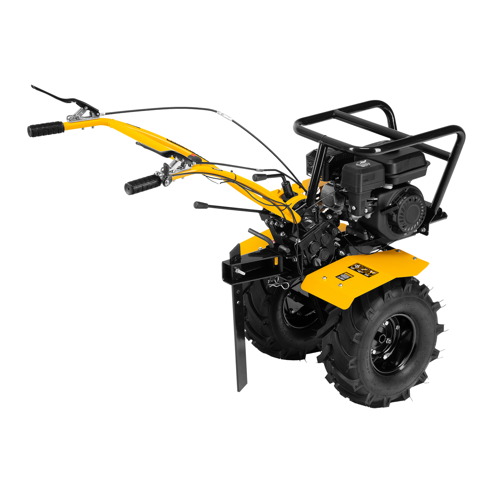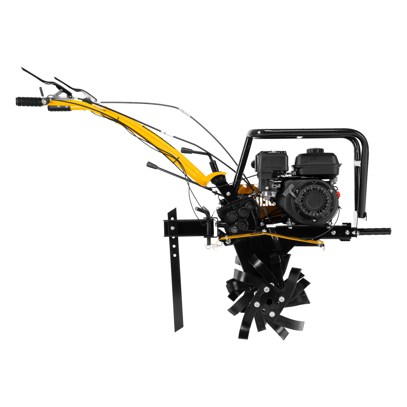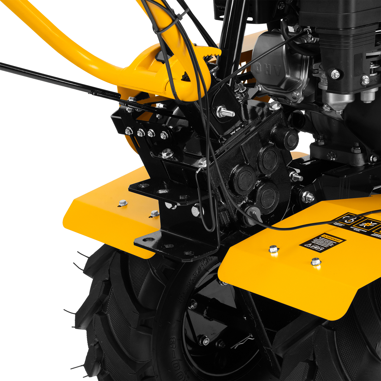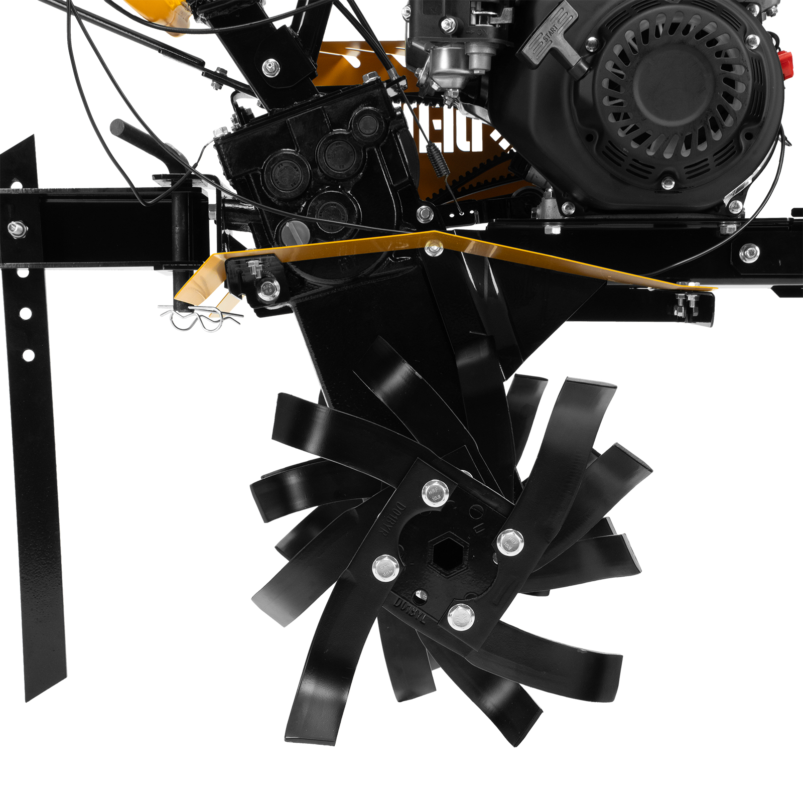- Безопасная эксплуатация — широкие защитные крылья предотвращают вылет комьев земли и других предметов в сторону пользователя.