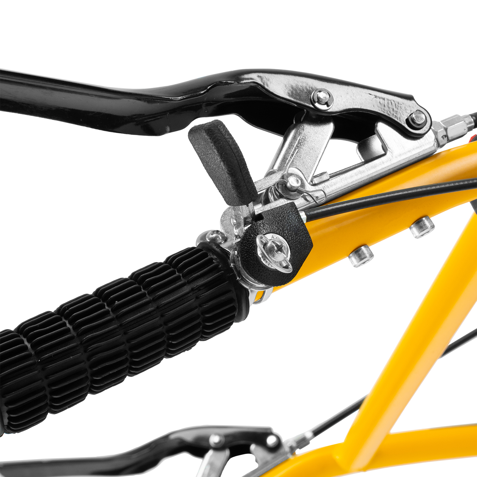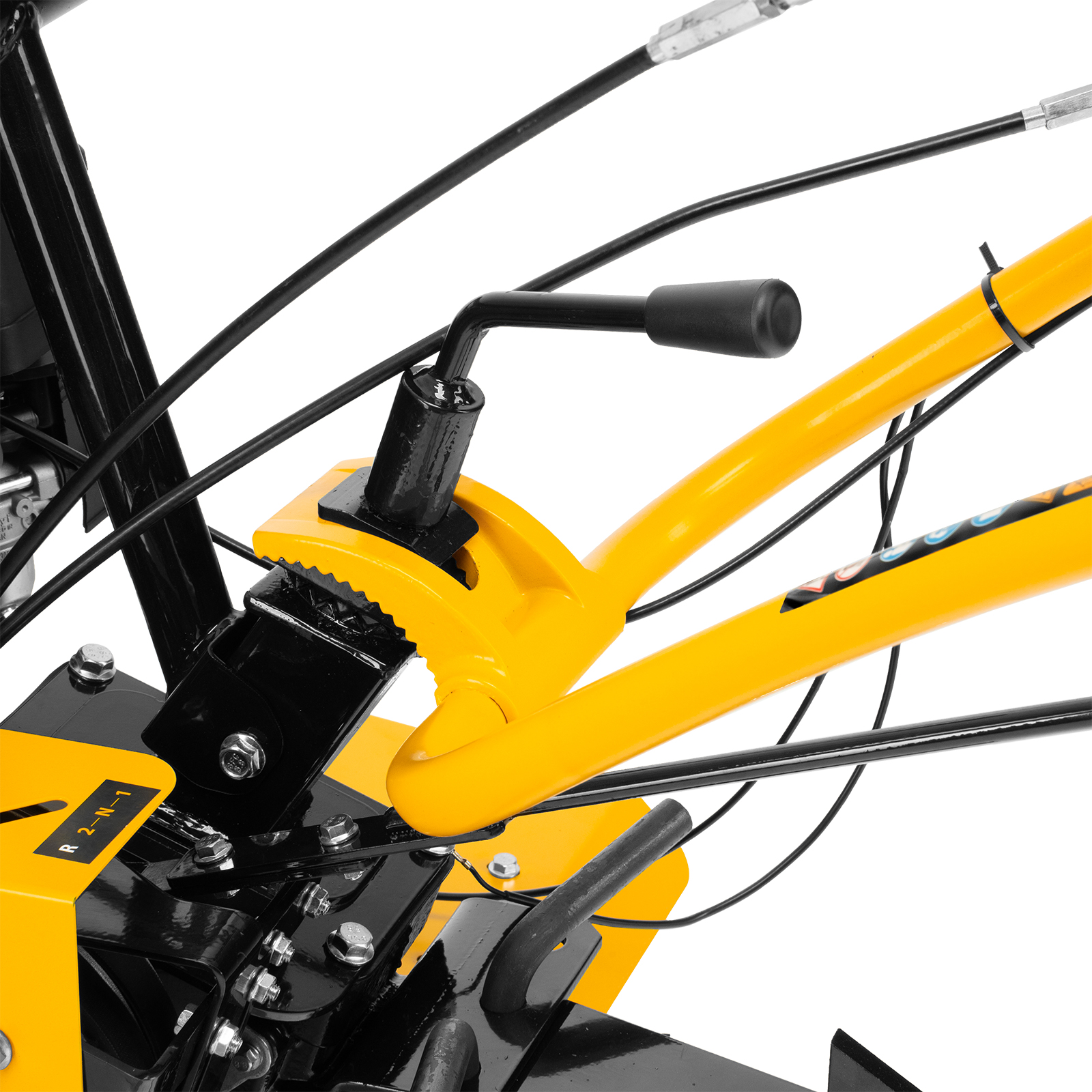 - Удобное управление — регулятор оборотов двигателя и рычаги сцепления расположены на руле, руль регулируется в двух плоскостях.