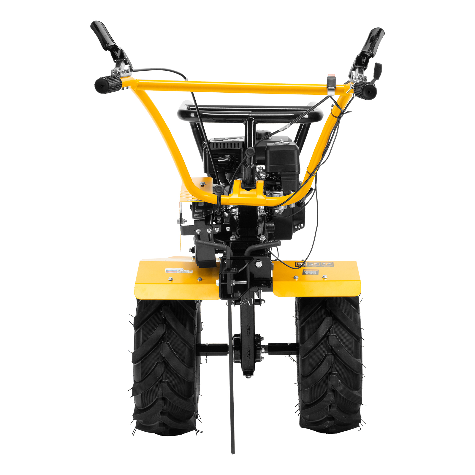 - Усиленная рама — ключевые узлы надежно защищены, мотоблок удобно транспортировать.
