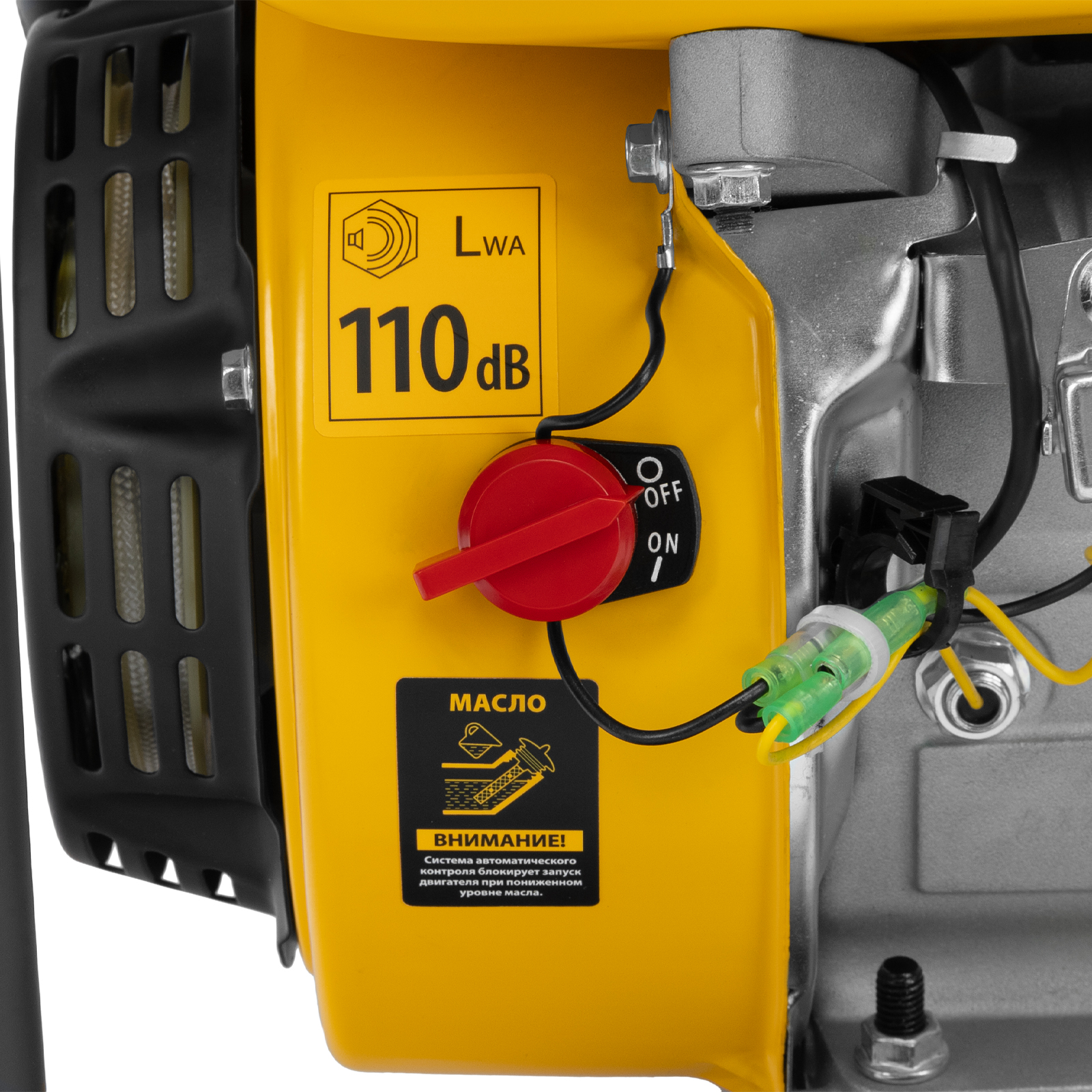 - Защита двигателя — при низком уровне масла мотопомпа автоматически отключается для предотвращения поломки.