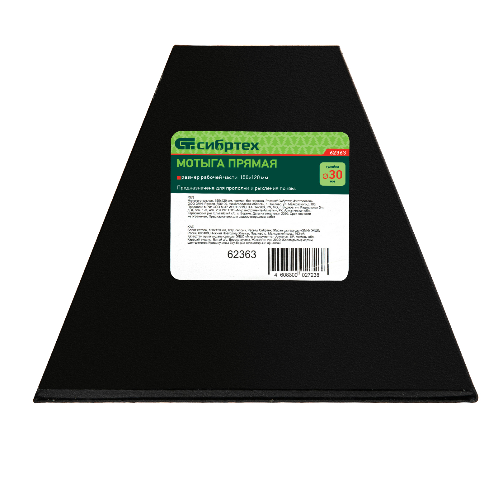 Прямая стальная мотыга Сибртех 62363 размером 150 х 120 мм, без черенка, используется для рыхления и прополки почвы, окучивания растений. Благодаря широкой и высокой рабочей части мотыга удобна для обработки больших участков. Полотно толщиной 1,5 мм легко входит в землю, что упрощает работу. Мотыгу можно установить на любой удобный черенок диаметром 30 мм. Инструмент предназначен для ухода за садом и огородом.