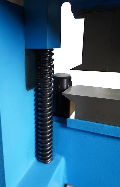 - Наличие пружинного компенсатора прижимной балки и пневматического компенсатора гибочной балки существенно облегчает работу оператора;