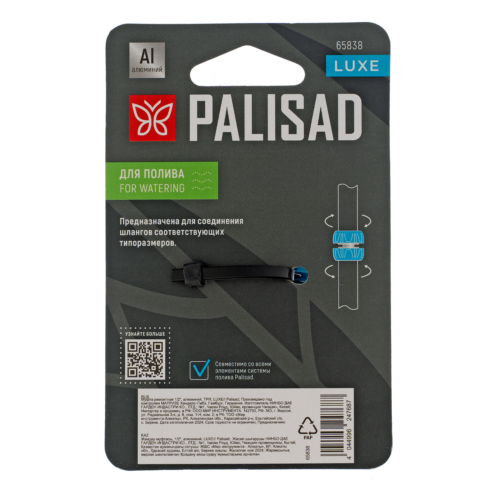 Муфта ремонтная алюминиевая Palisad LUXE 65838 позволяет соединить два шланга диаметром 1/2". С ее помощью можно удлинить поливочную линию или отремонтировать поврежденный участок шланга.