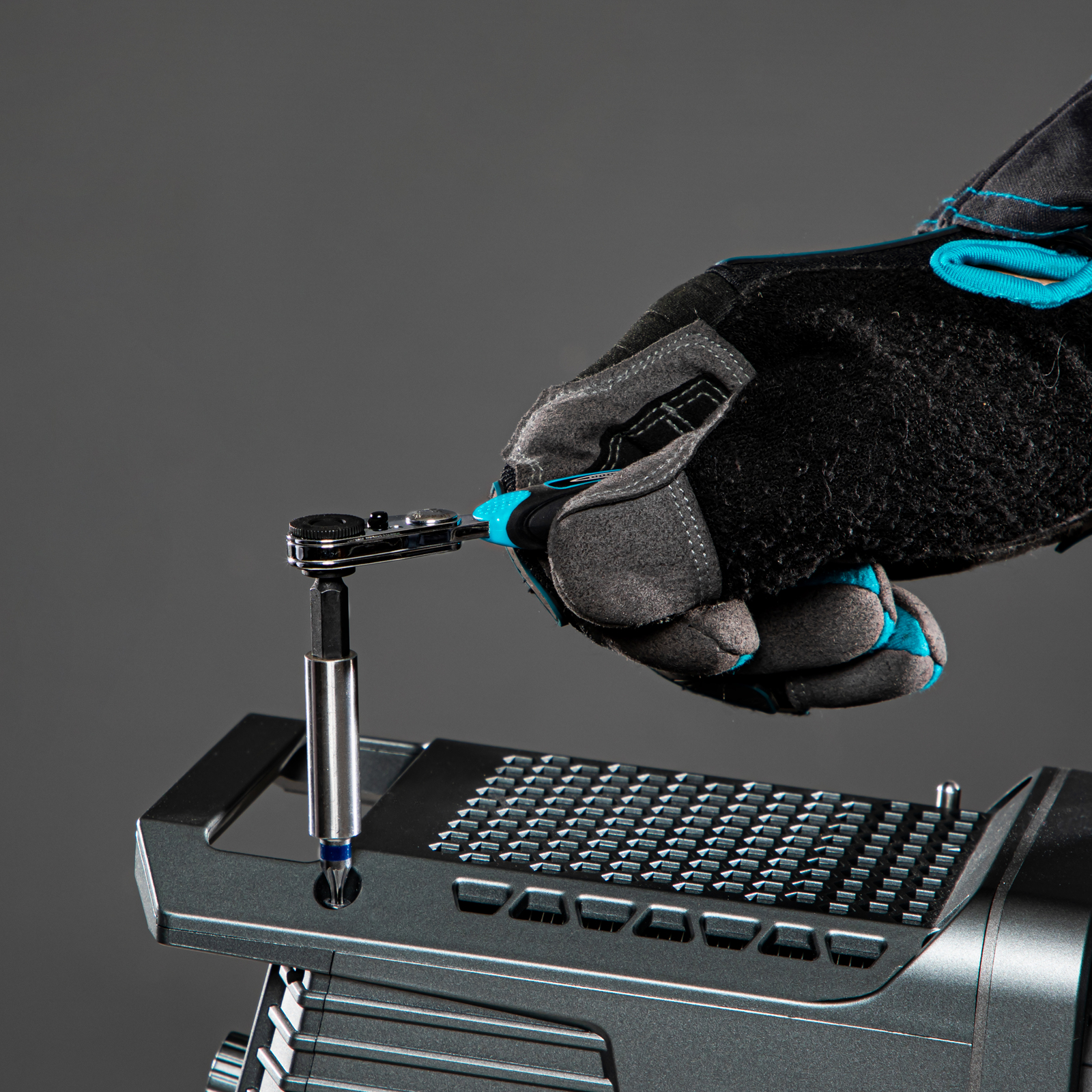 - Работа в труднодоступных местах — ключ с карданным шарниром позволяет выполнять монтаж/демонтаж метизов под любым углом, а удлинитель облегчает доступ к глубоко расположенным соединениям.