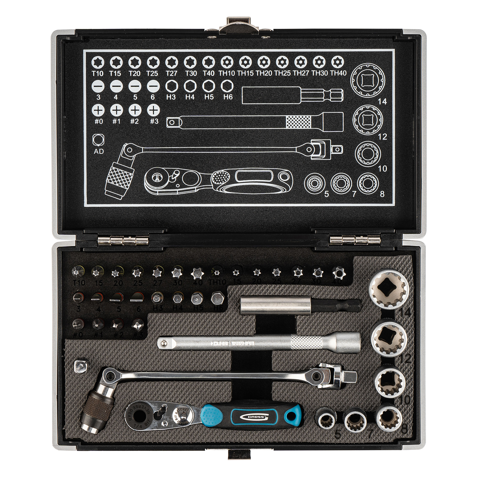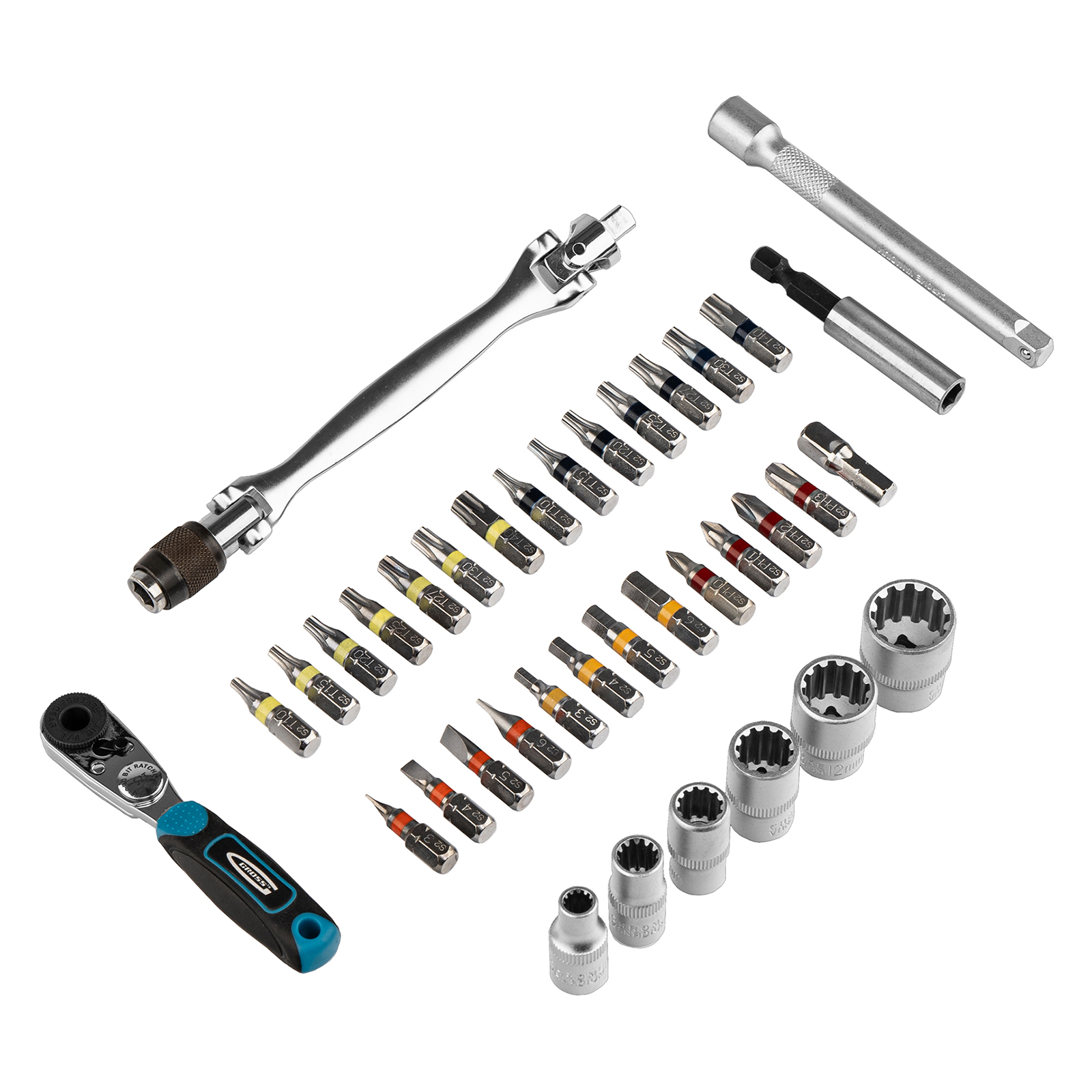 Набор бит и головок торцевых, 1/4, карданный ключ, трещотка, адаптер, S2, 37 шт. Gross