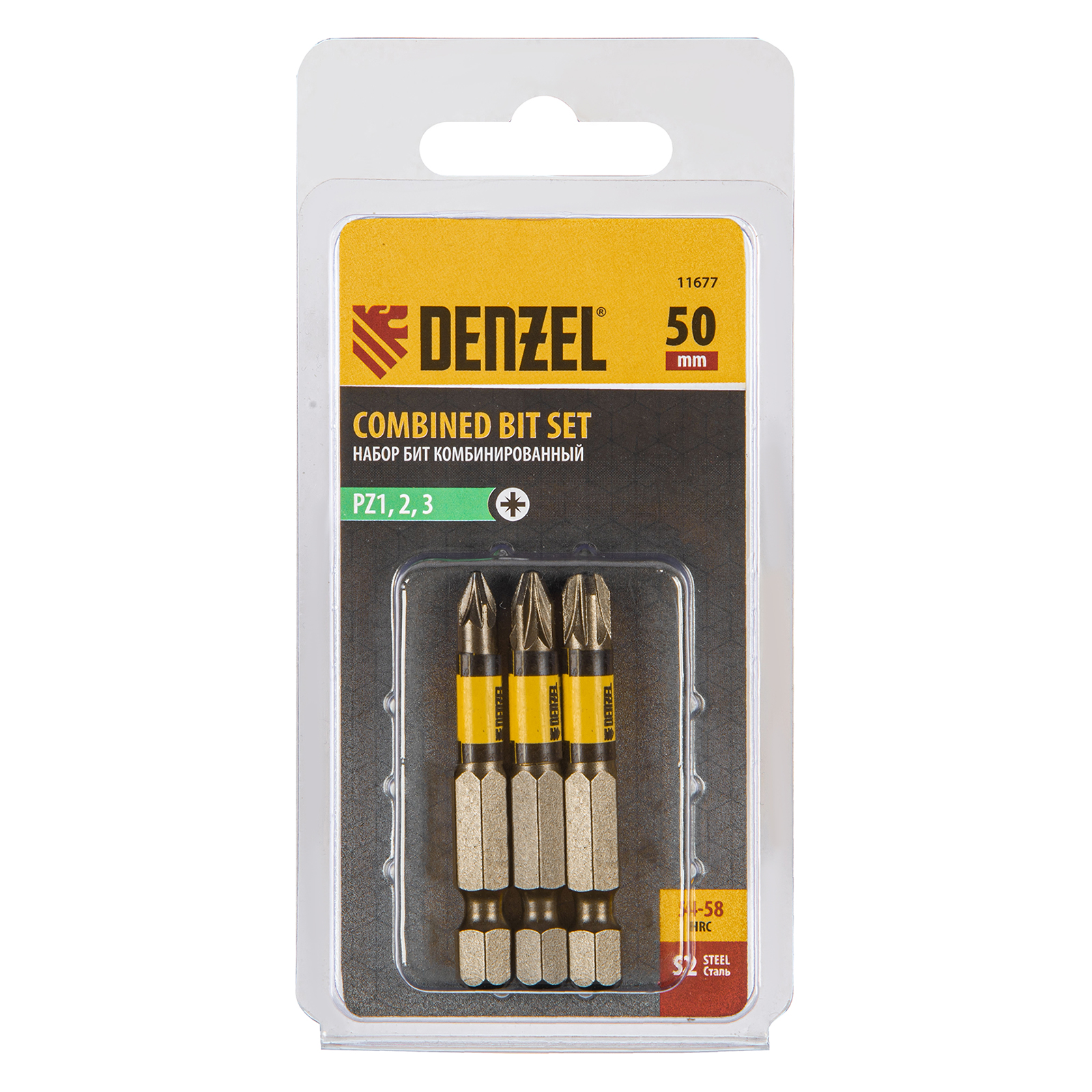 Набор бит комбинированный 3 шт., PZ1, PZ2, PZ3, 50 мм, сталь S2 Denzel