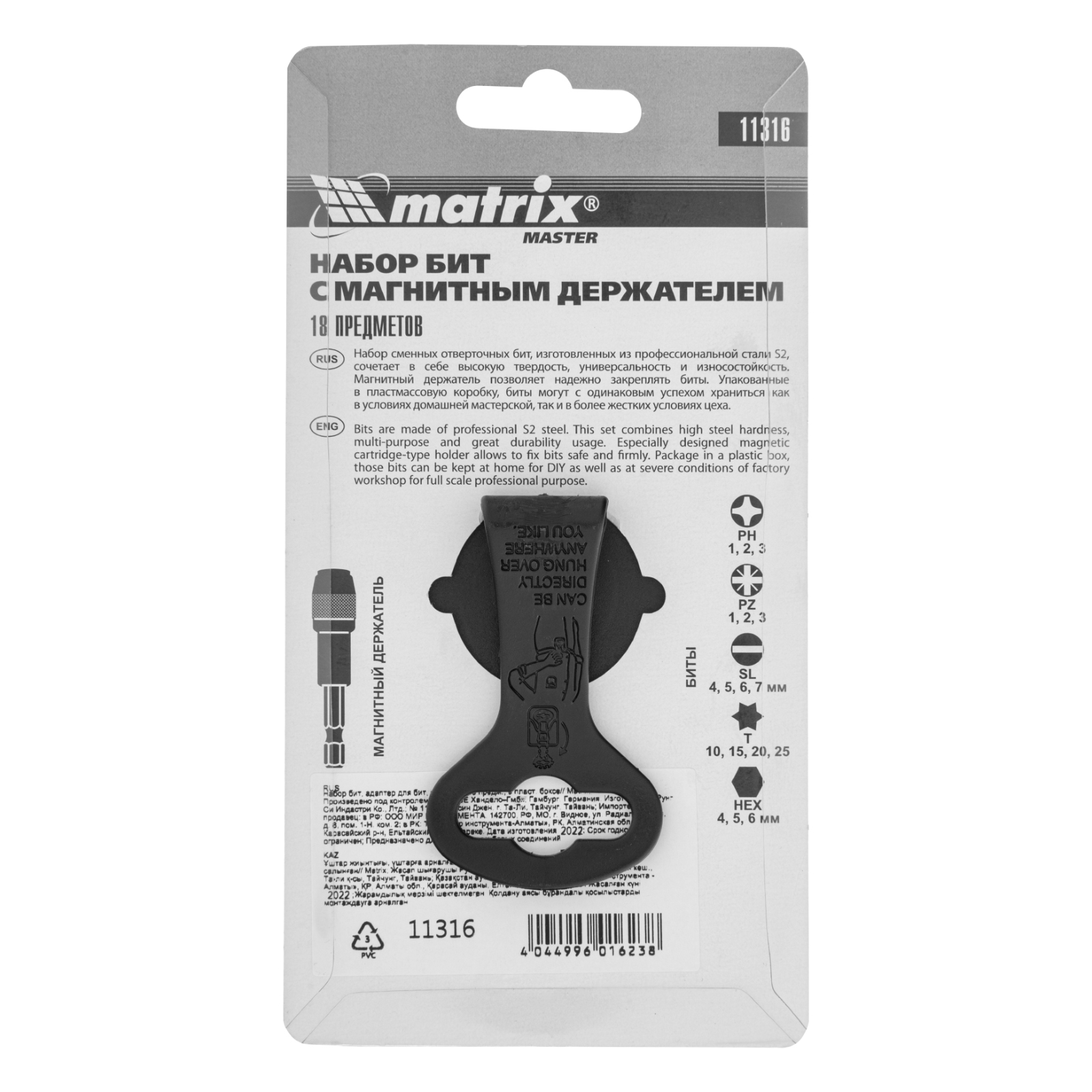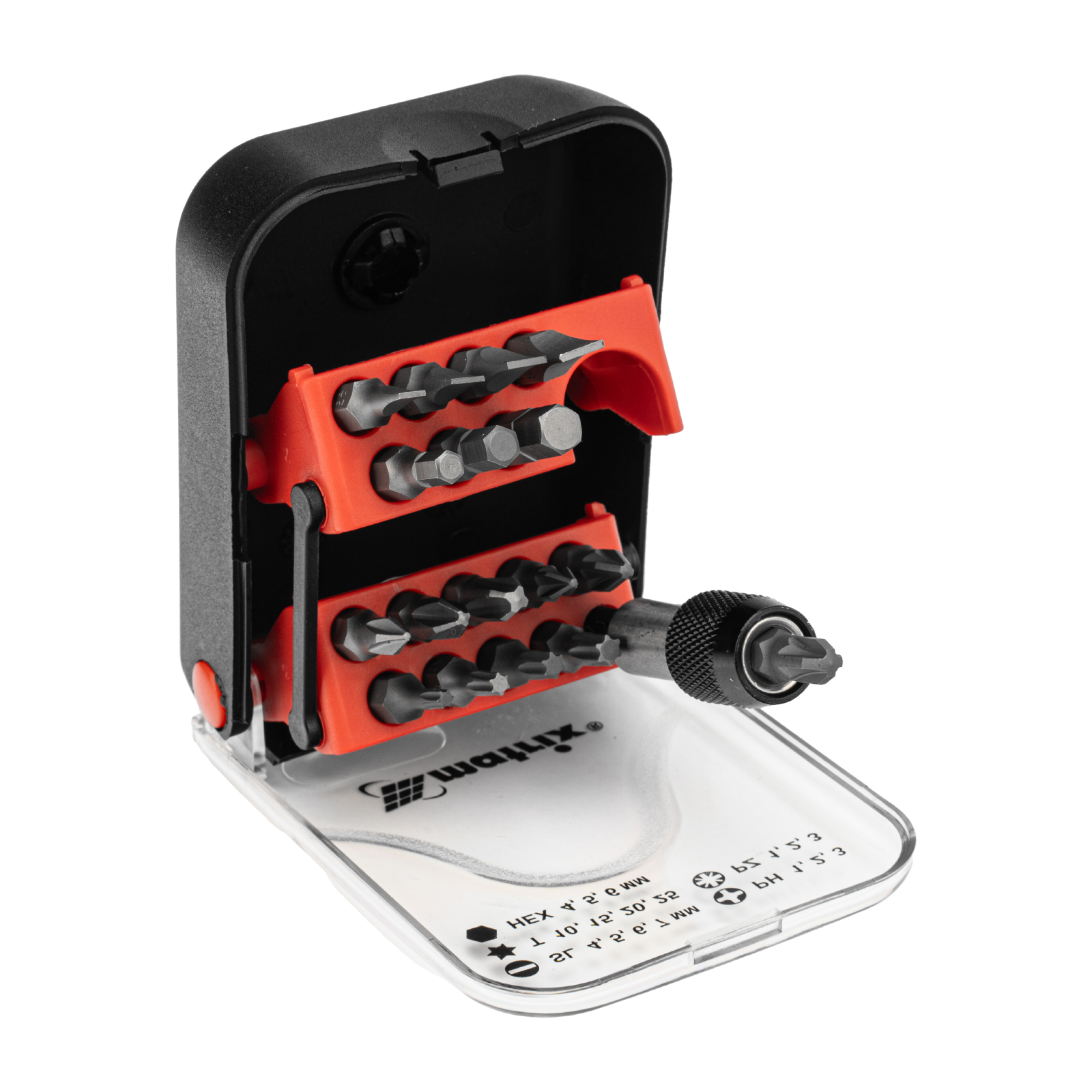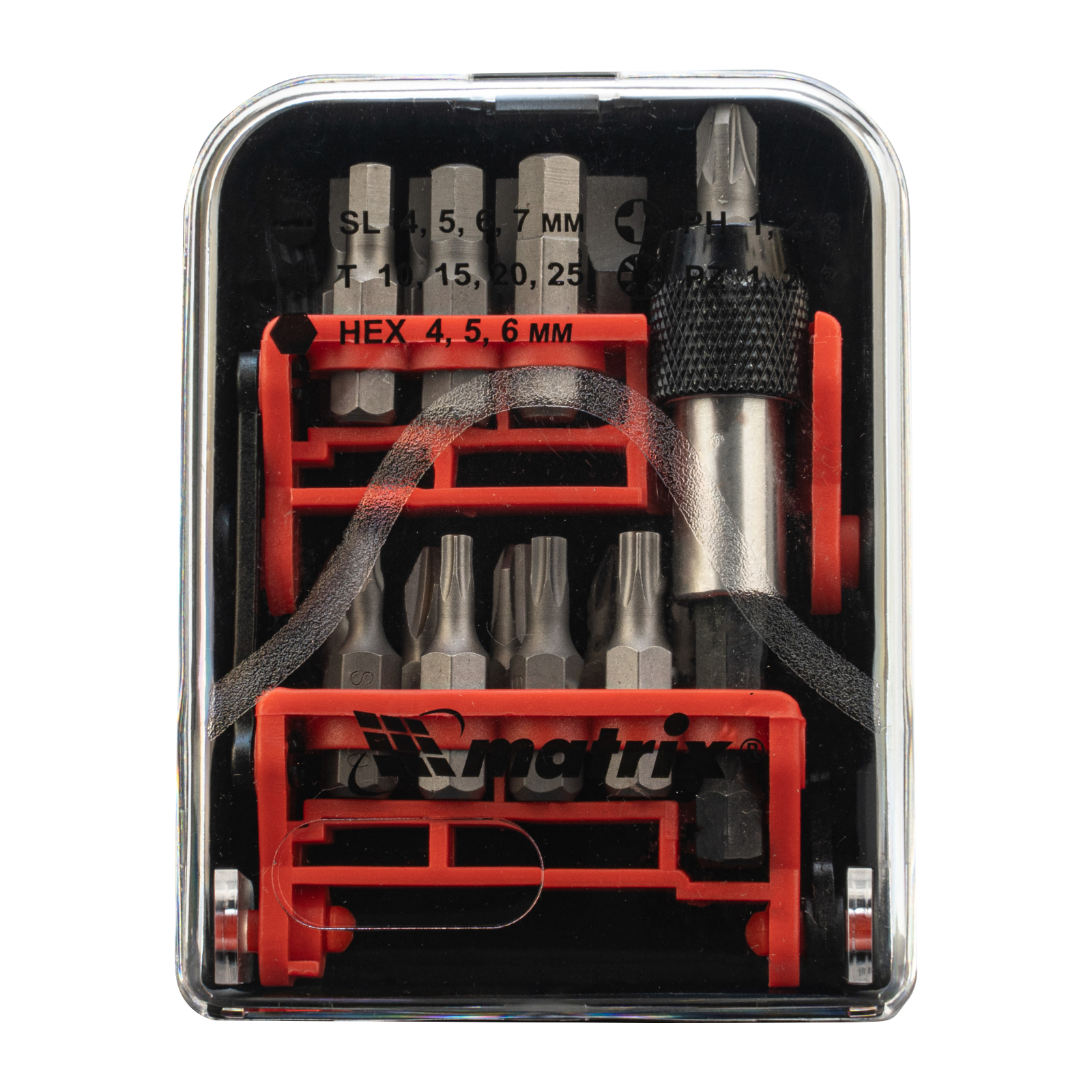 Набор бит, адаптер для бит, сталь S2, 18 предметов, пластиковый кейс Matrix