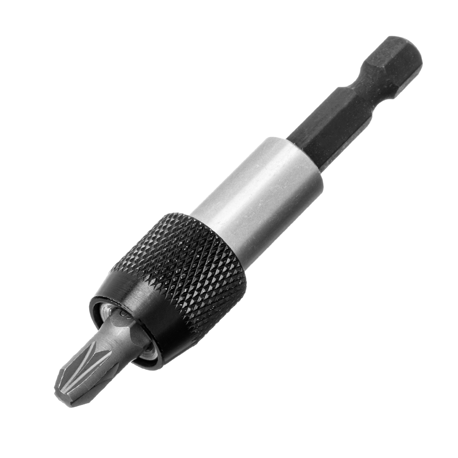 - Надежная фиксация — быстрозажимной механизм крепко удерживает биту в адаптере.