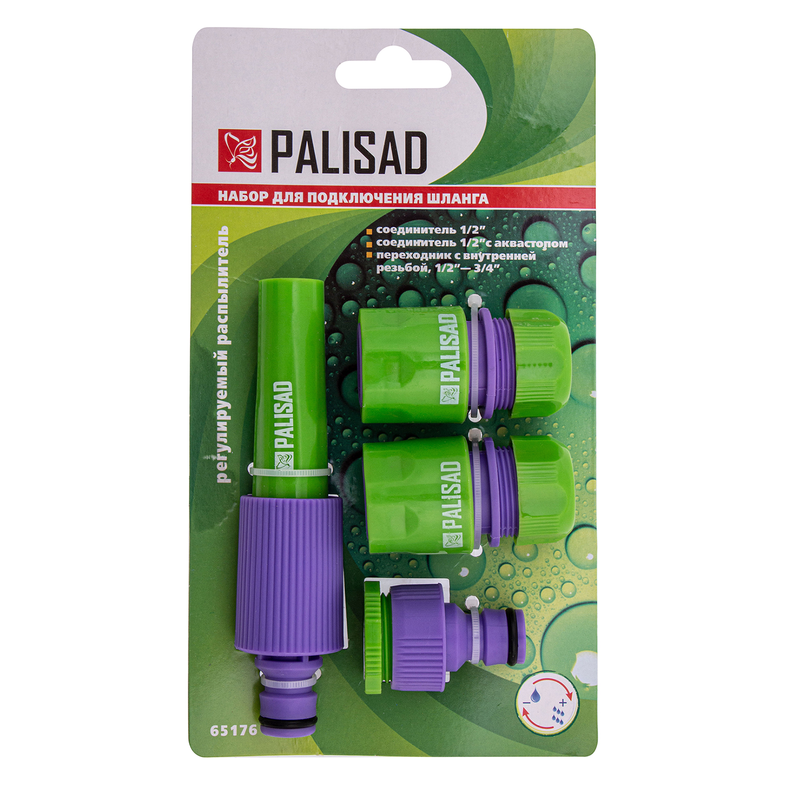 Набор для подключения шланга 1/2, распылитель, 3 адаптера к распылителю Palisad