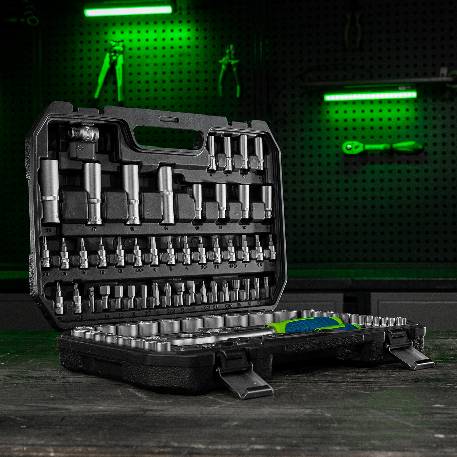 Набор инструментов, 1/2", 1/4", пластиковый кейс, 94 предмета// Сибртех