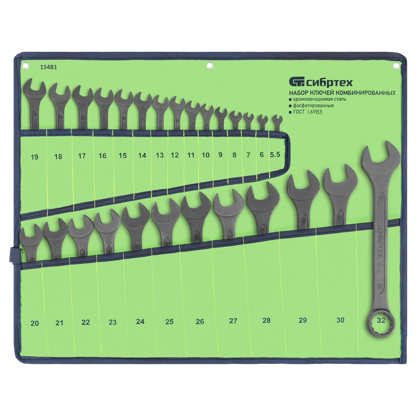 Набор ключей комбинированных - 27 шт. Размеры ключей 5,5, 6, 7, 8, 9, 10, 11, 12, 13, 14, 15, 16, 17, 18, 19, 20, 21, 22, 23, 24, 25, 26, 27, 28, 29, 30, 32 мм |