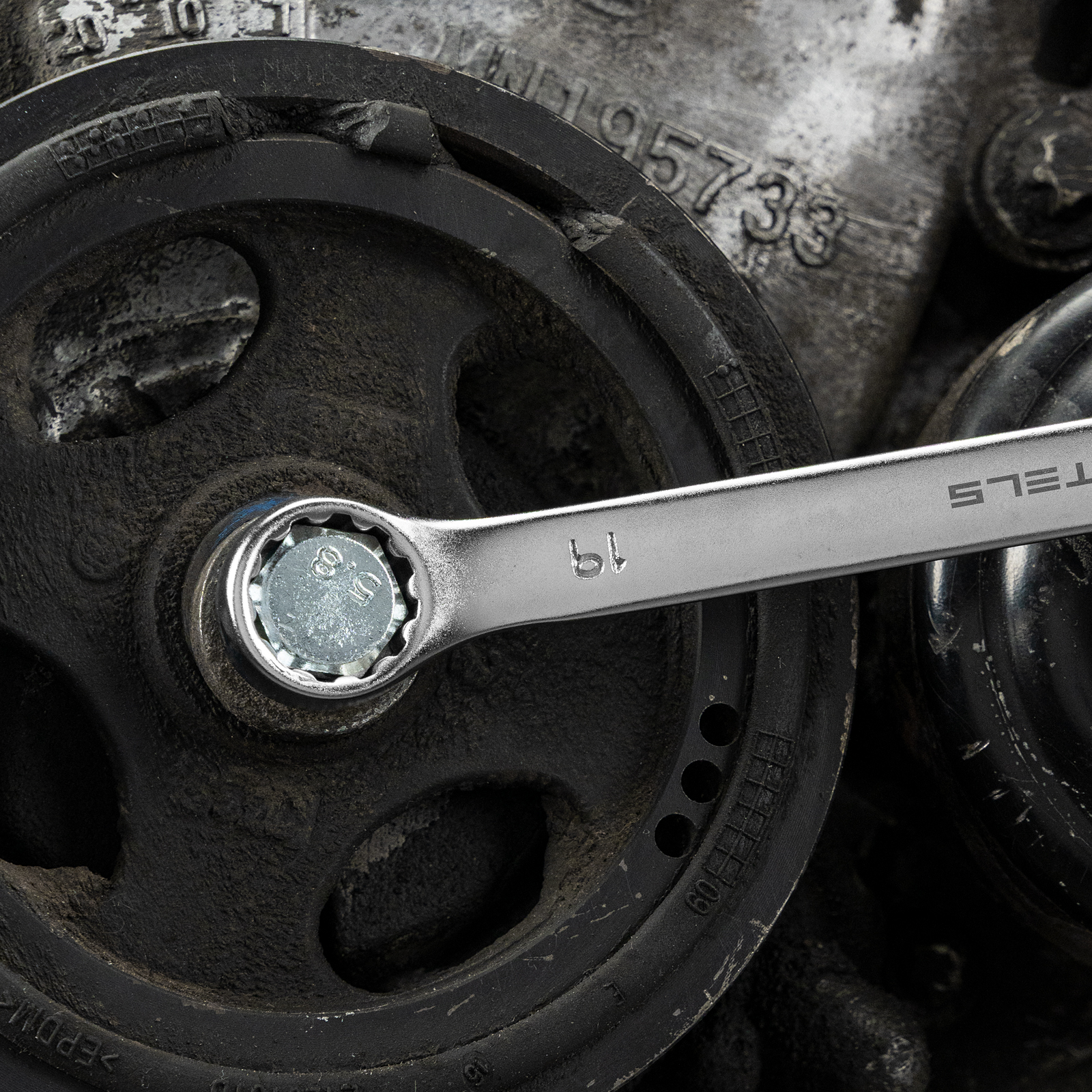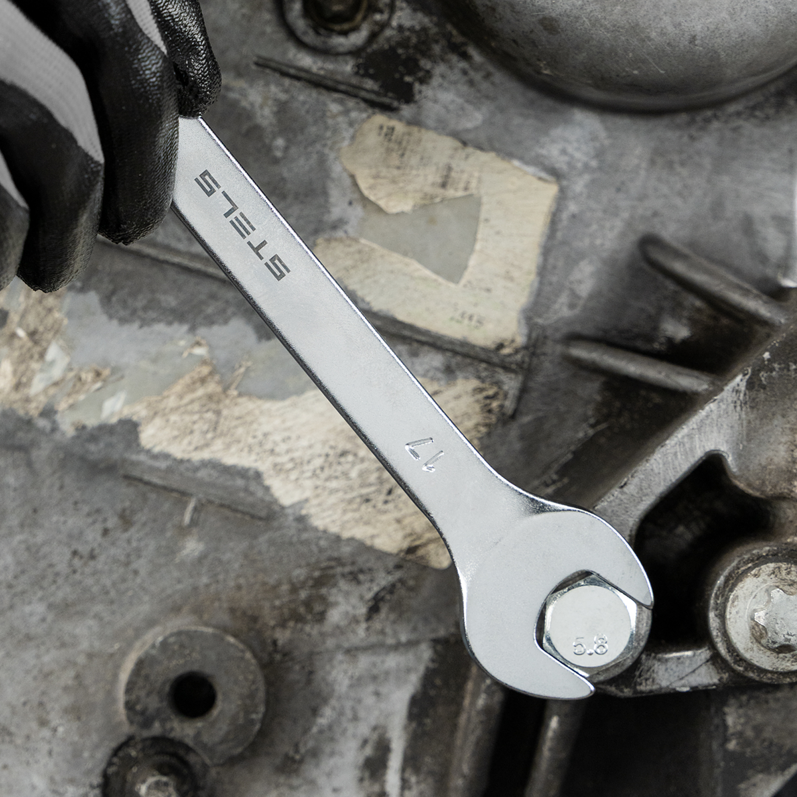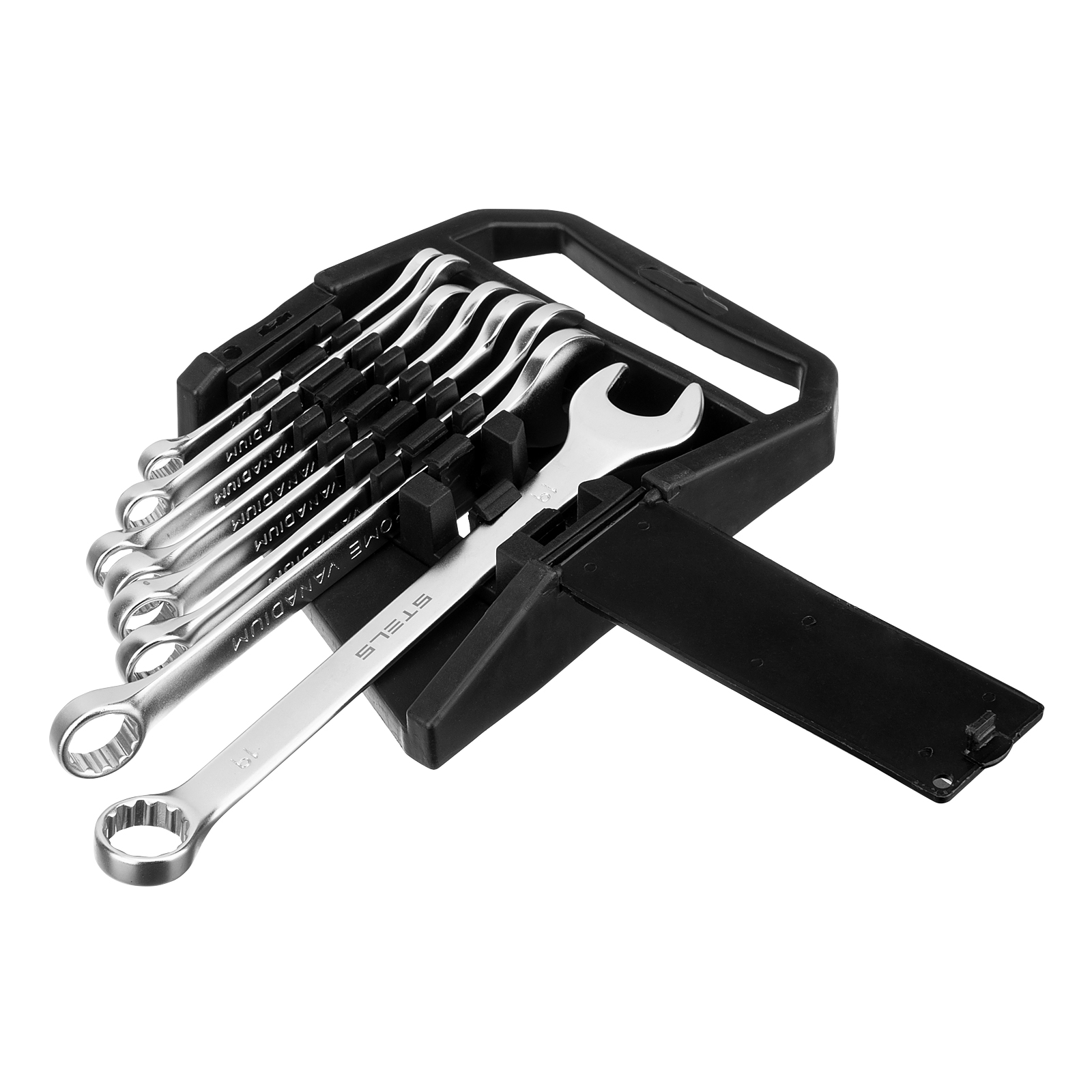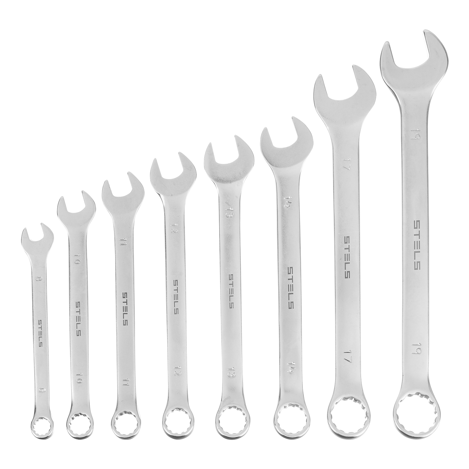 Набор ключей комбинированных, 8-19 мм, 8 шт, CrV, матовый хром Stels |