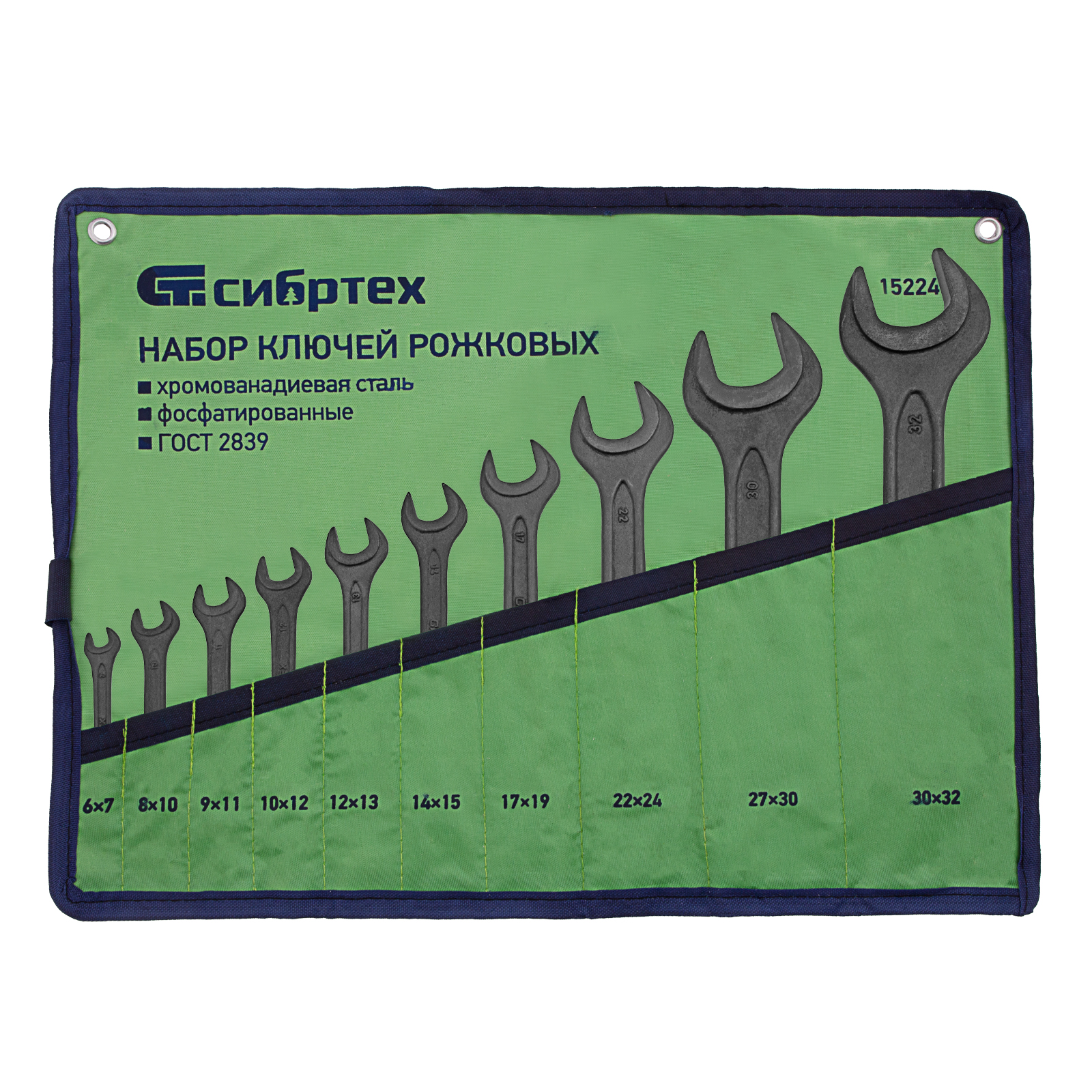 Набор ключей рожковых, 6 - 32 мм, 10 шт., CrV, фосфатированные Сибртех |