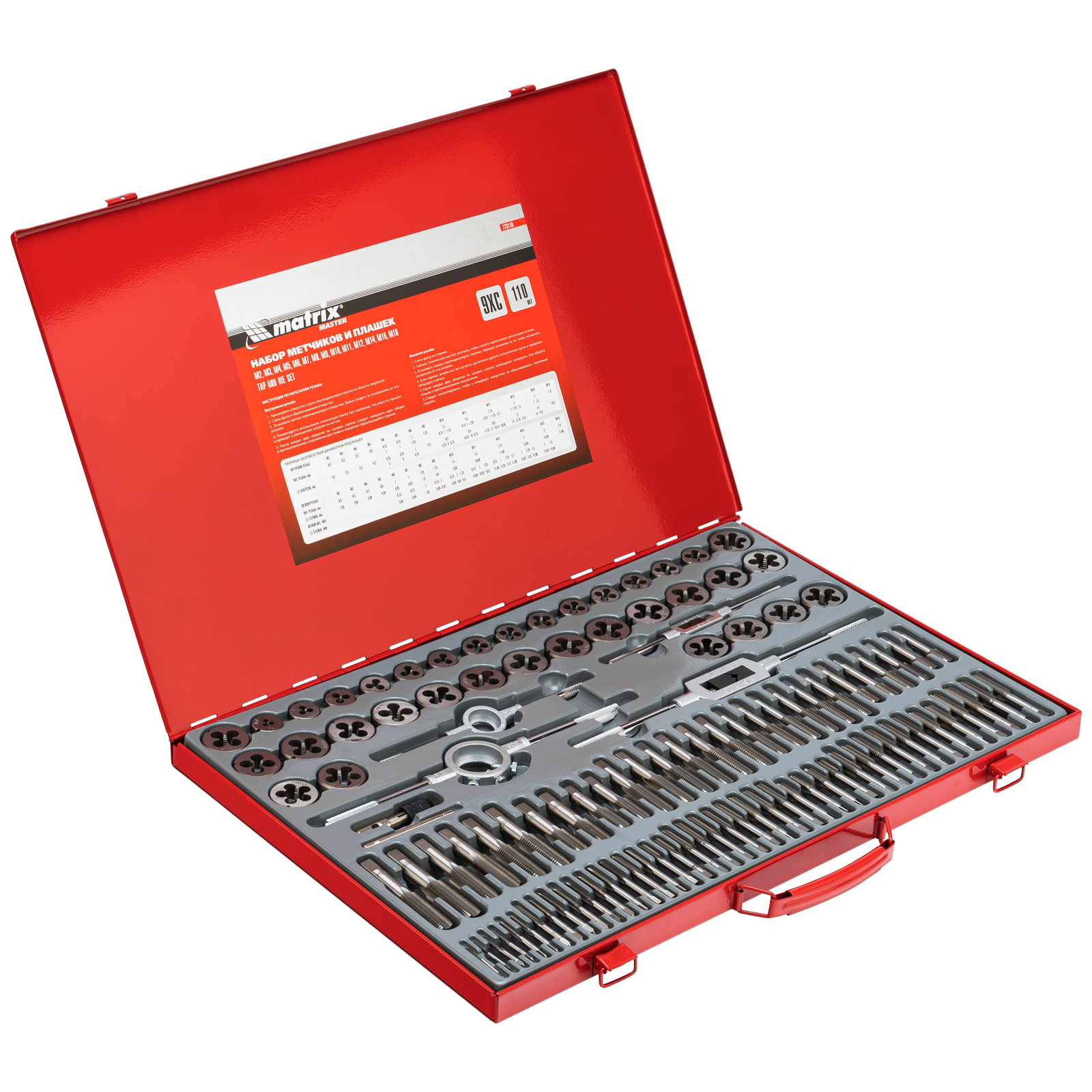 Набор метчиков и плашек М2-М18, 110 шт, металлический кейс Matrix |