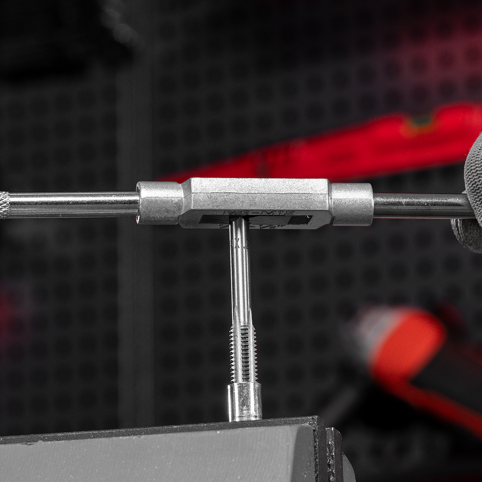 - Удобная работа в труднодоступных местах — в набор входит Т-образный метчикодержатель.