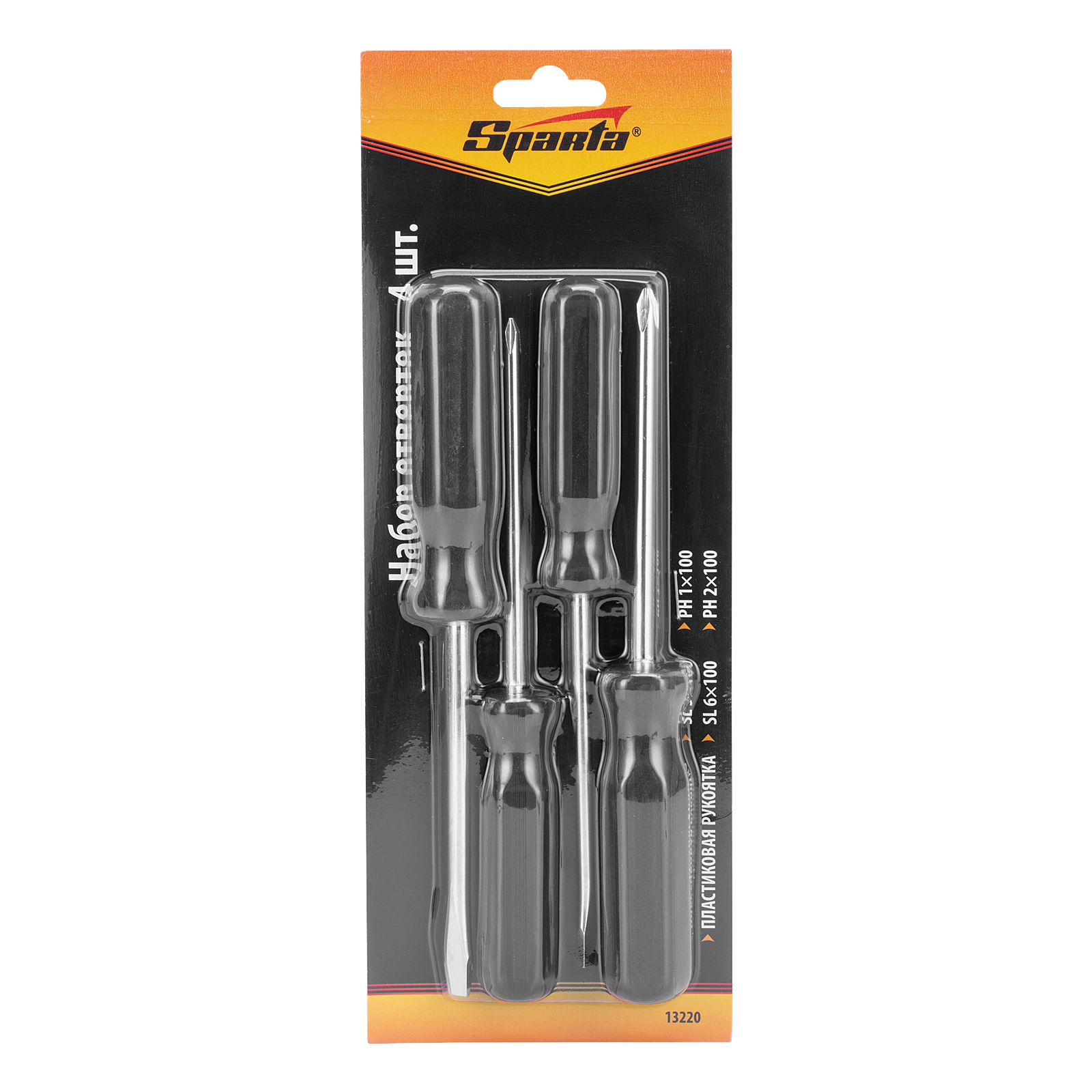 Набор отверток 4 шт, SL5 x 100.6 x 100, PH1 x 100, 2 x 100, углеродистая сталь, пластиковая рукоятка Sparta