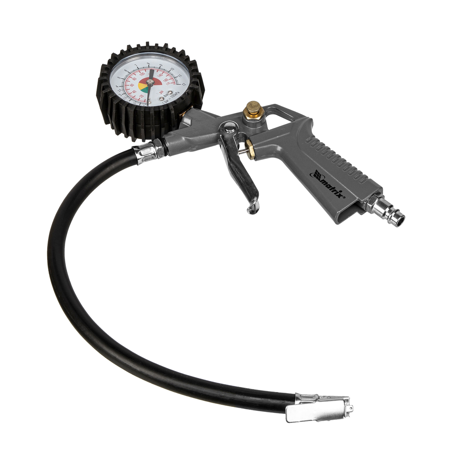 - Контроль давления — пистолет подкачки шин оснащен точным механическим манометром.