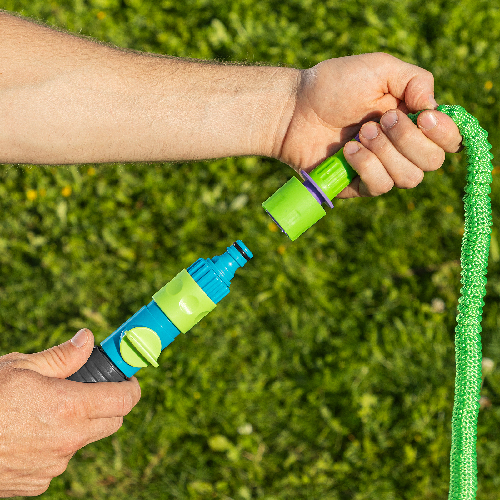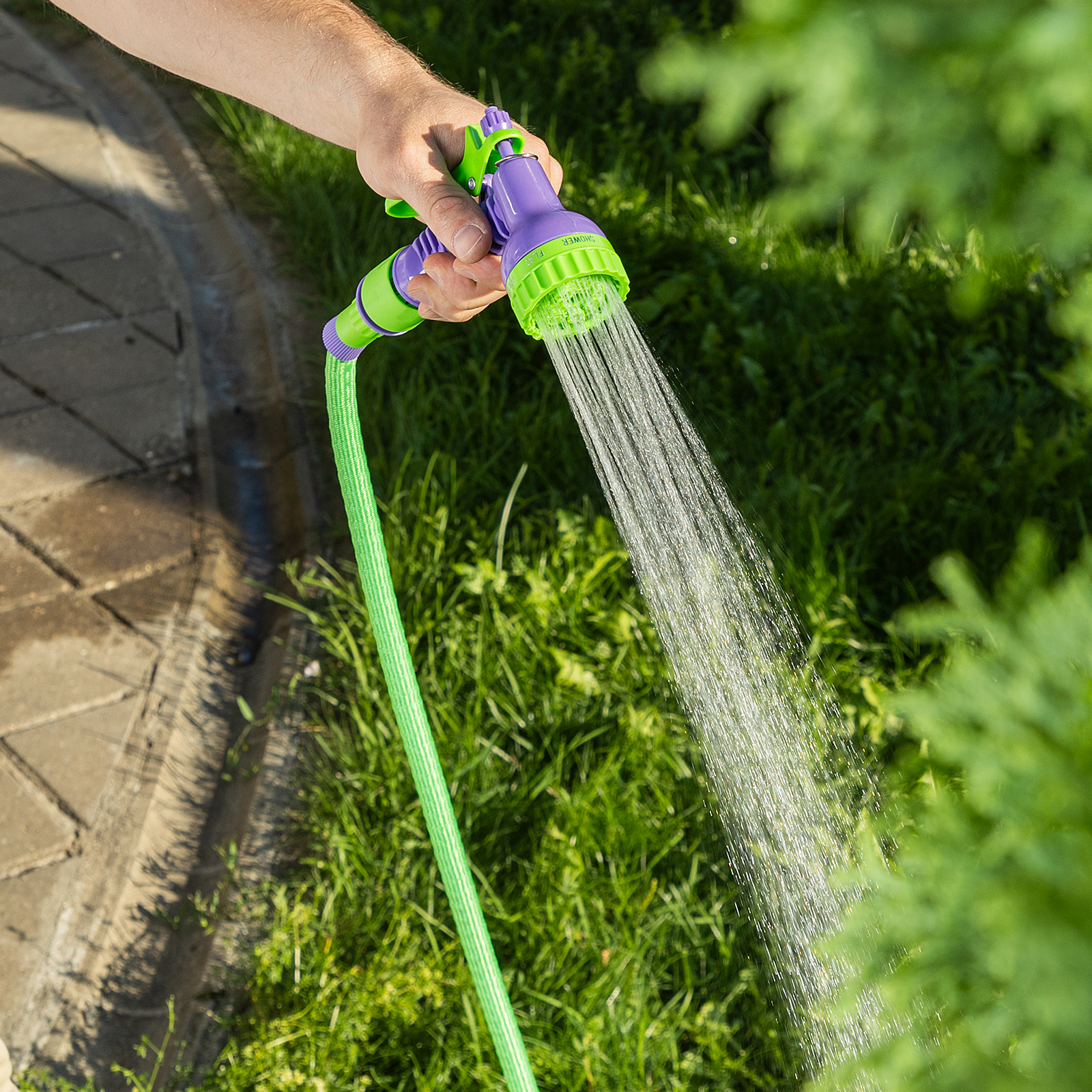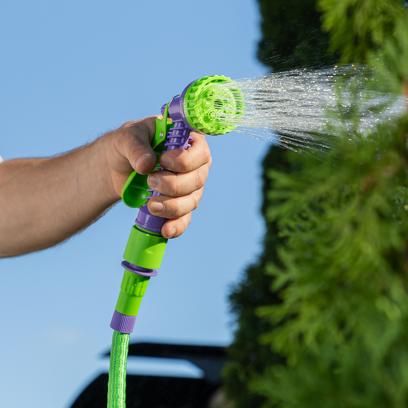 - Охват значительной площади полива — в растянутом состоянии длина шланга достигает 30 м.