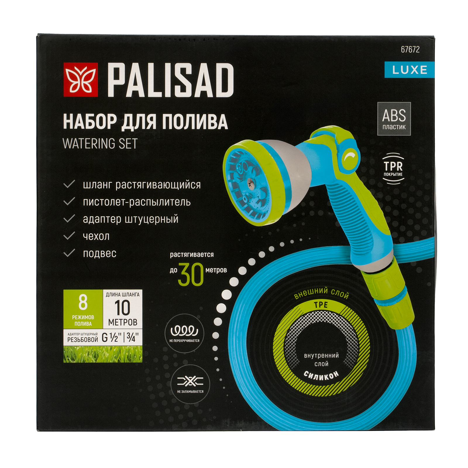 Набор поливочный, шланг 10-30м, пистолет 8 реж., чехол, подвес, LUXE Palisad
