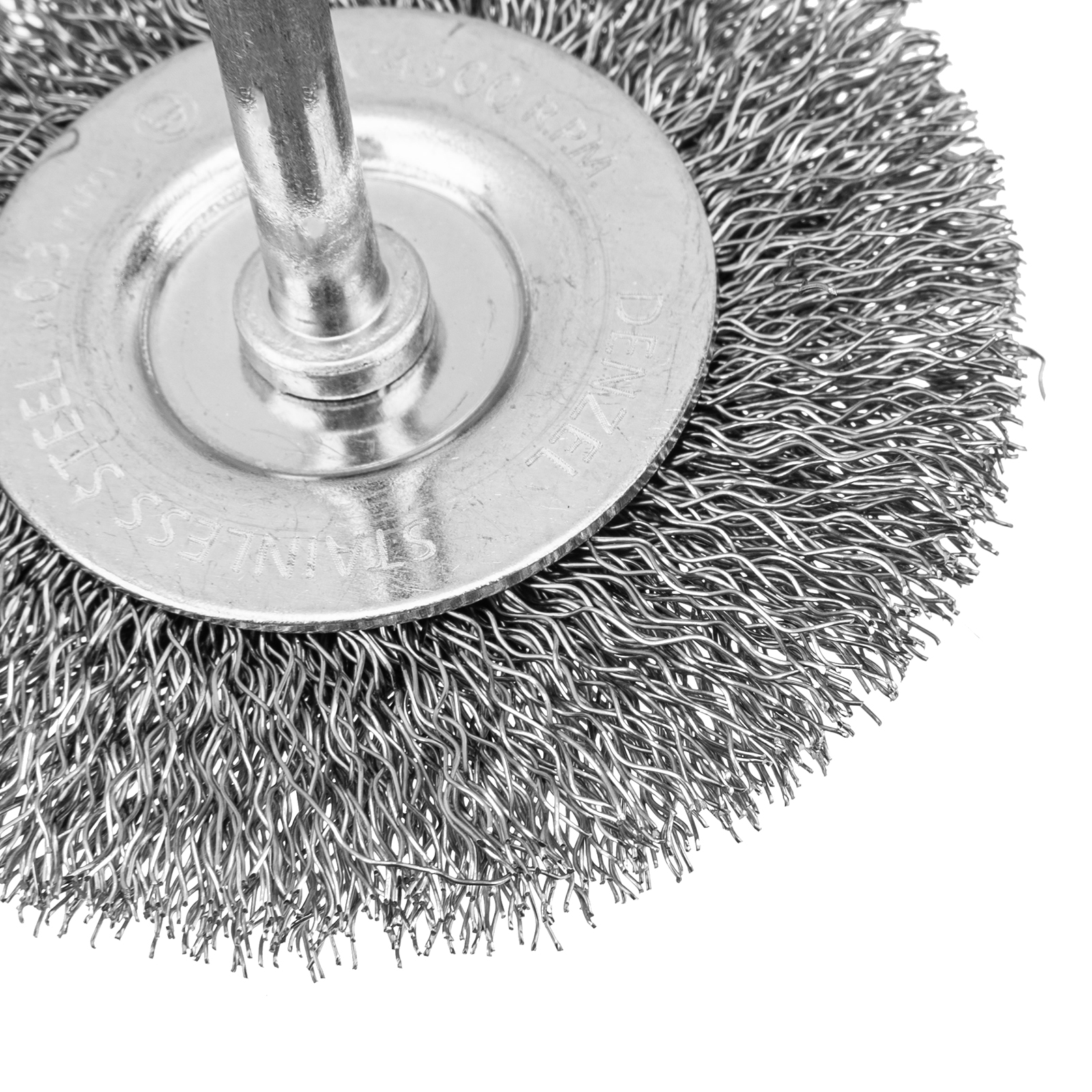 - Быстрая подготовка к работе — щетки имеют хвостовик диаметром 6 мм для установки в патрон дрели.