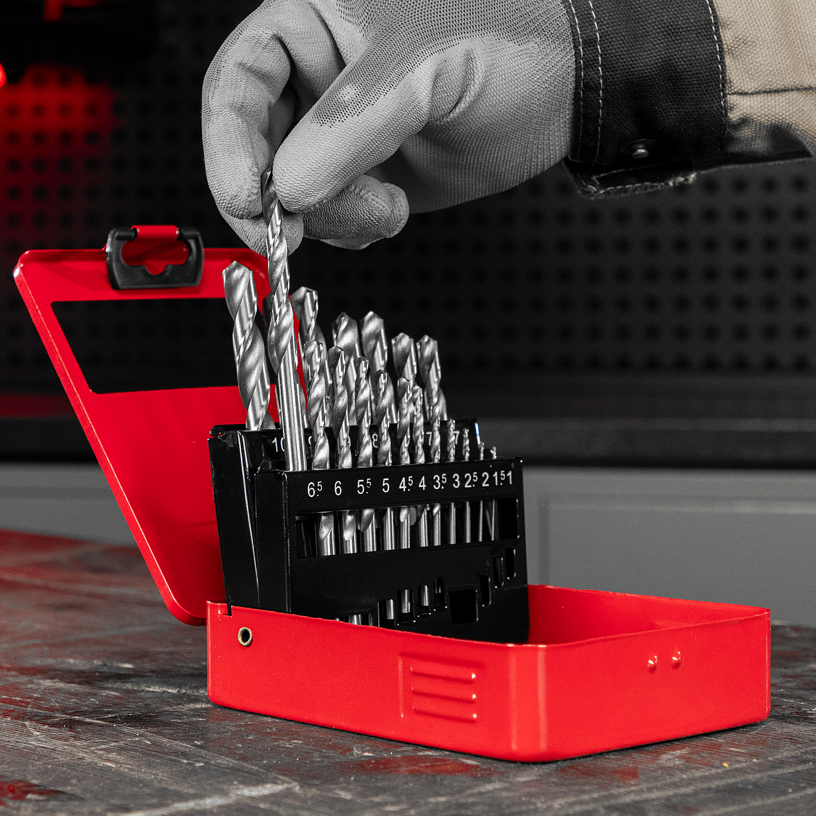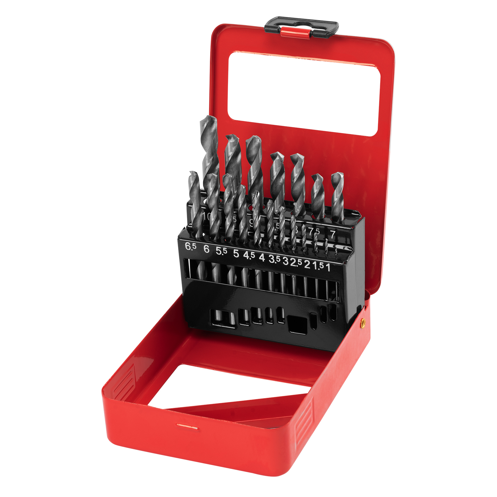 Набор сверл по металлу, 1-10 мм (через 0.5 мм) HSS 19 шт, металлическая коробка, цилиндрический хвостовик Matrix