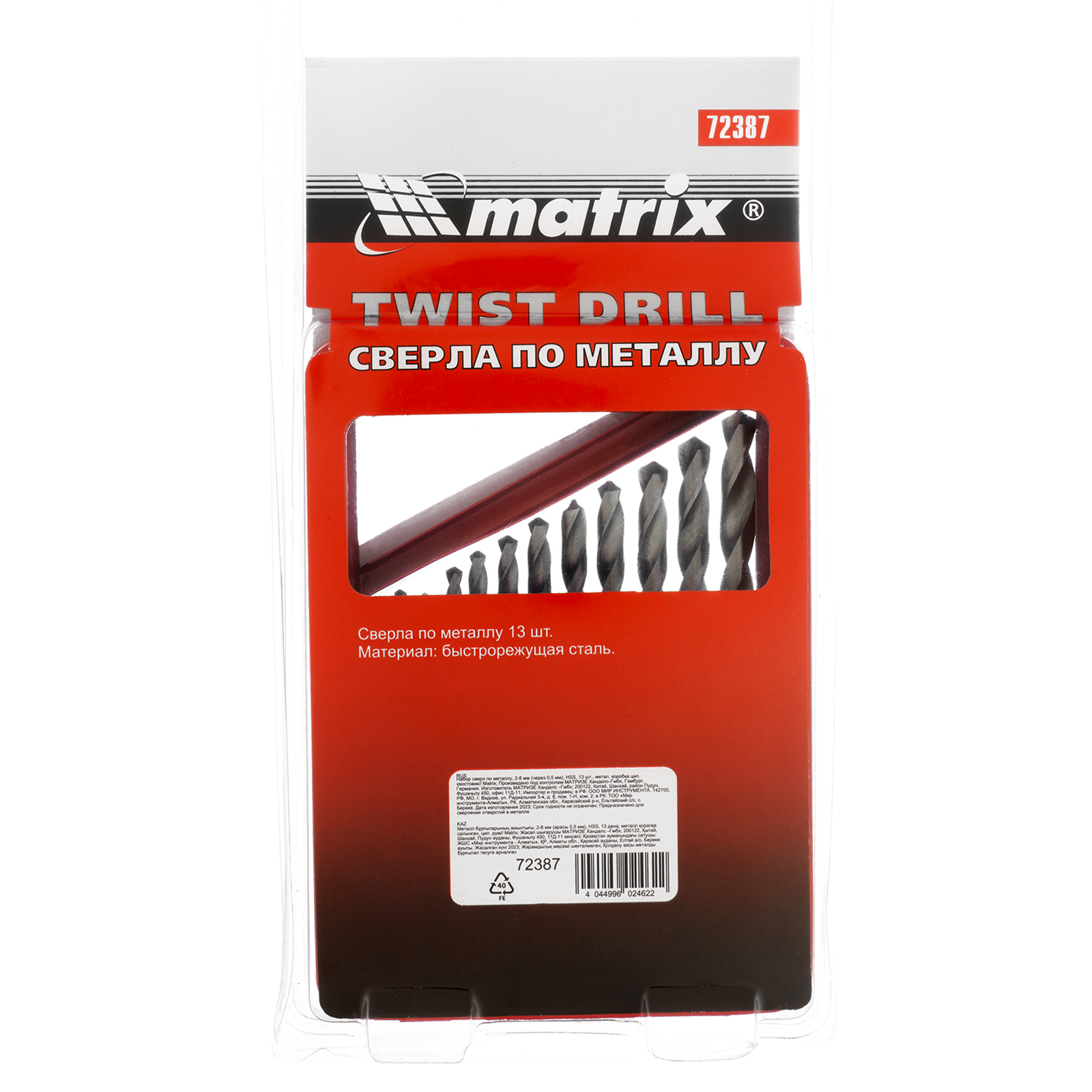 Набор сверл по металлу Matrix 72387, 13 шт. из стали HSS, с цилиндрическим хвостовиком, диаметром 2-8 мм (через 0,5 мм), в металлической коробке, используется для получения отверстий в металле и жестком пластике. Сверла выдерживают высокие нагрузки и подходят для интенсивного использования.