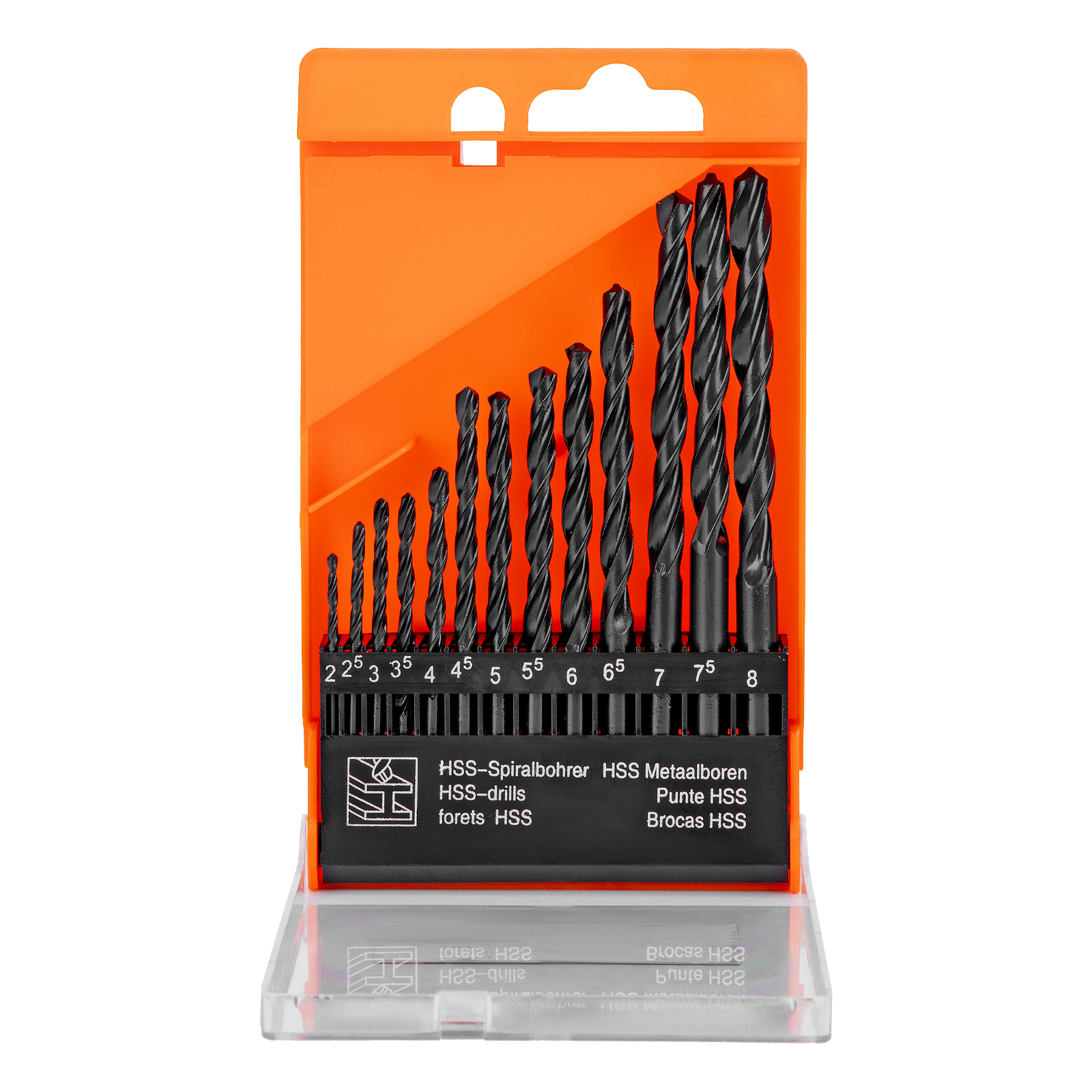 Сверло по металлу 2, 2,5, 3, 3,5, 4, 4,5, 5, 5,5, 6, 6,5, 7, 7,5, 8 - 13 штПластиковый кейс - 1 шт |