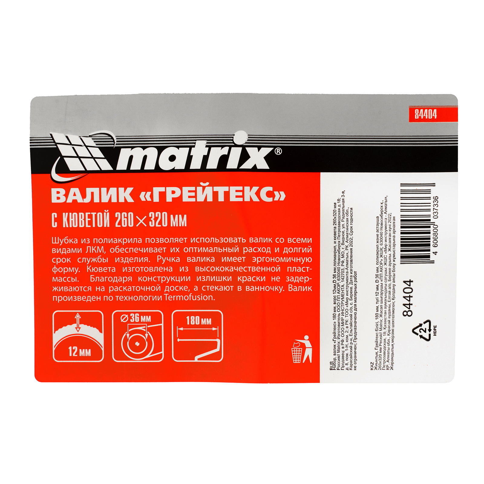 Набор, валик «Грейтекс» 180 мм, ворс 12 мм, D 36 мм, полиакрил, кювета 260 х 320 мм Matrix