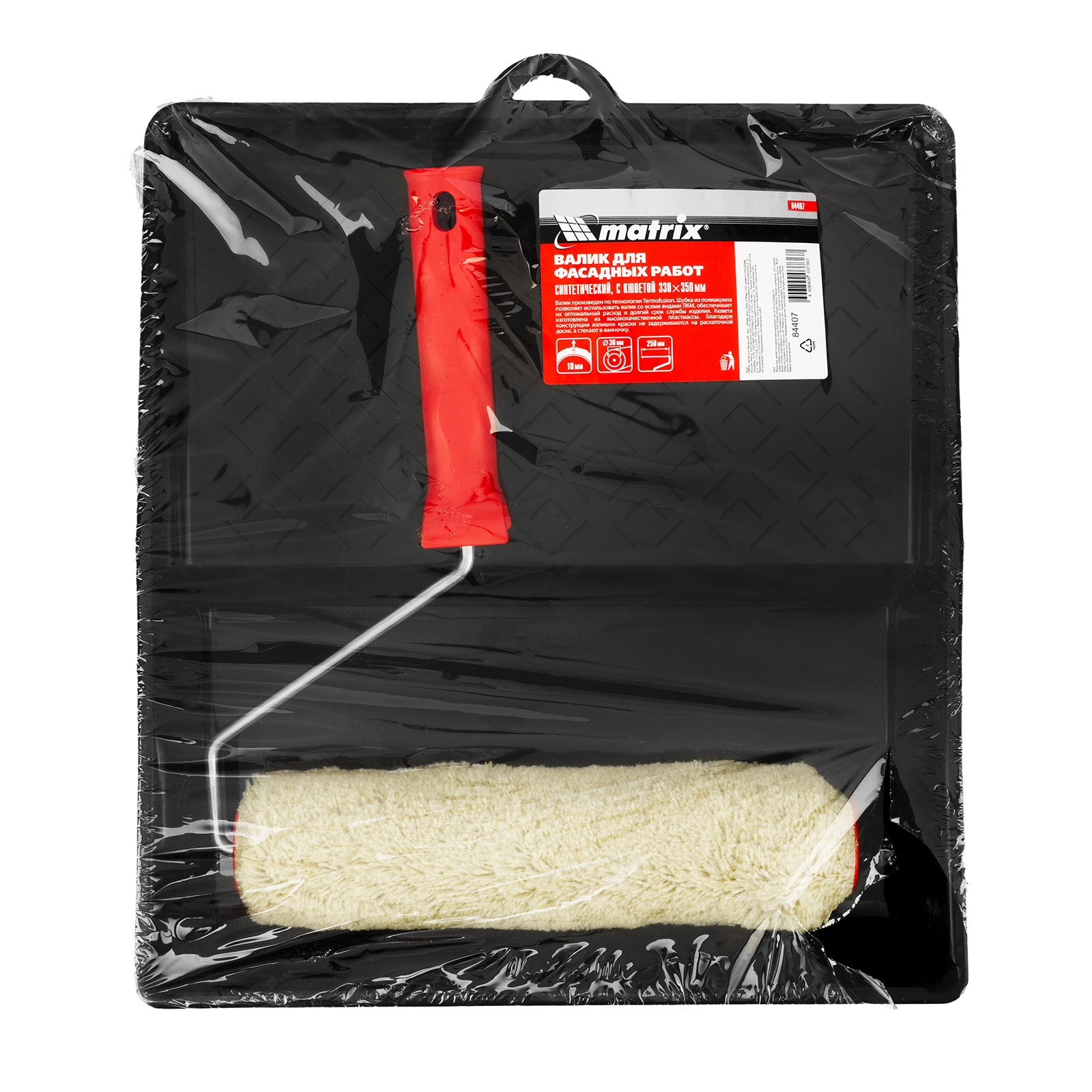 Набор, валик для фасадных работ синтетический, 250 мм, ворс 18 мм, D 36 мм, РАС, кювета 330 х 350 мм Matrix