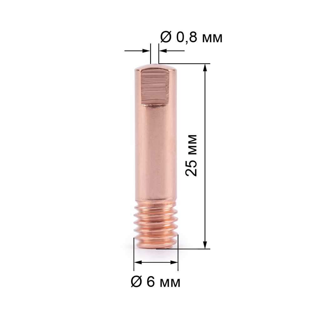 Наконечник прямой предназначен для полуавтоматических горелок. Применяется для точной подачи сварочной проволоки и для формирования качественной сварочной дуги. Наконечник крепится на горелке при помощи резьбы М6. Изготовлен из меди, что обеспечивает надежность и долговечность использования.