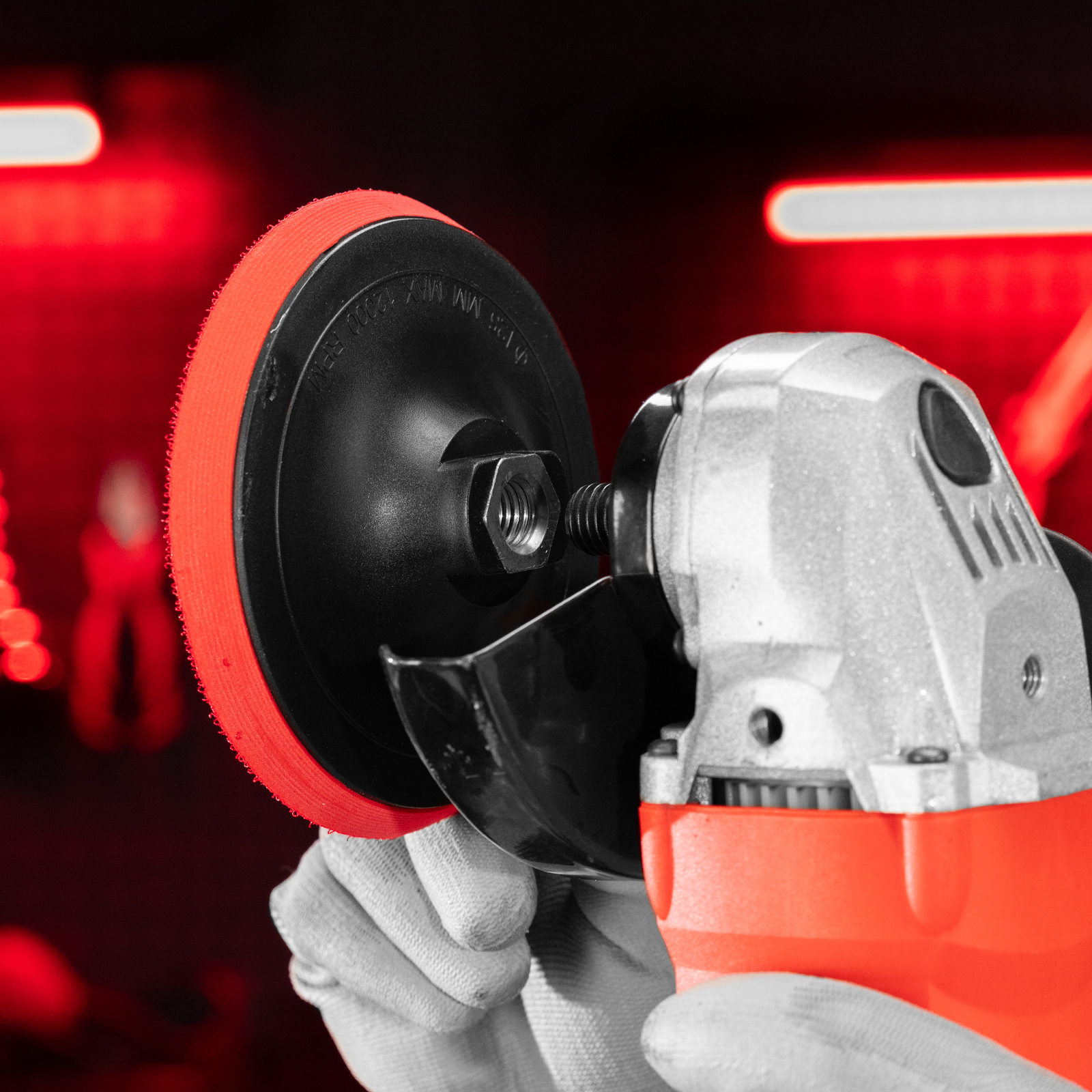 - Надежная фиксация и быстрая замена круга под «липучку» — нейлоновая рабочая поверхность оснащена крючками velcro.