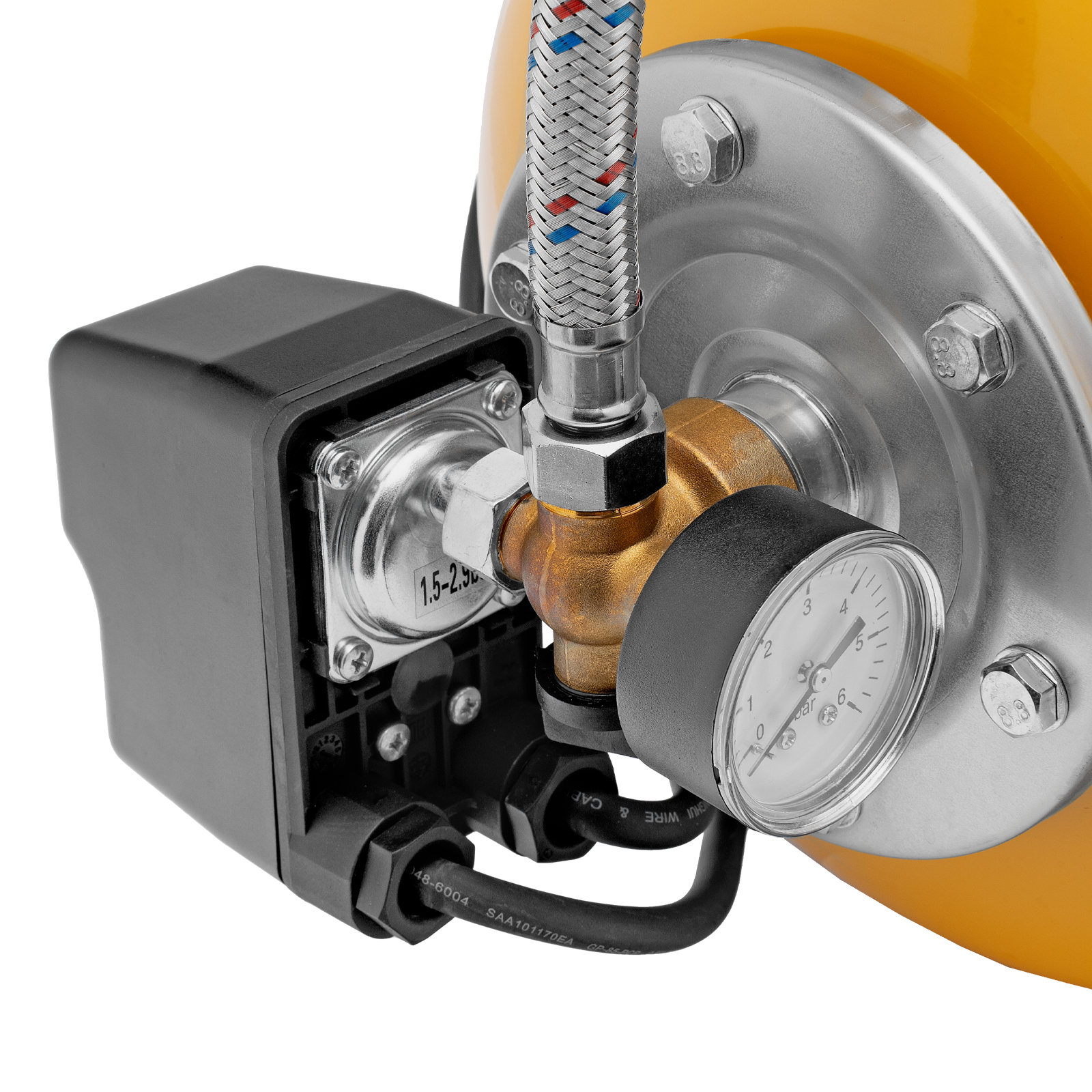 - Удобный визуальный контроль — манометр позволяет отслеживать давление воды на выходе и экономит бюджет на покупку дополнительных измерителей.