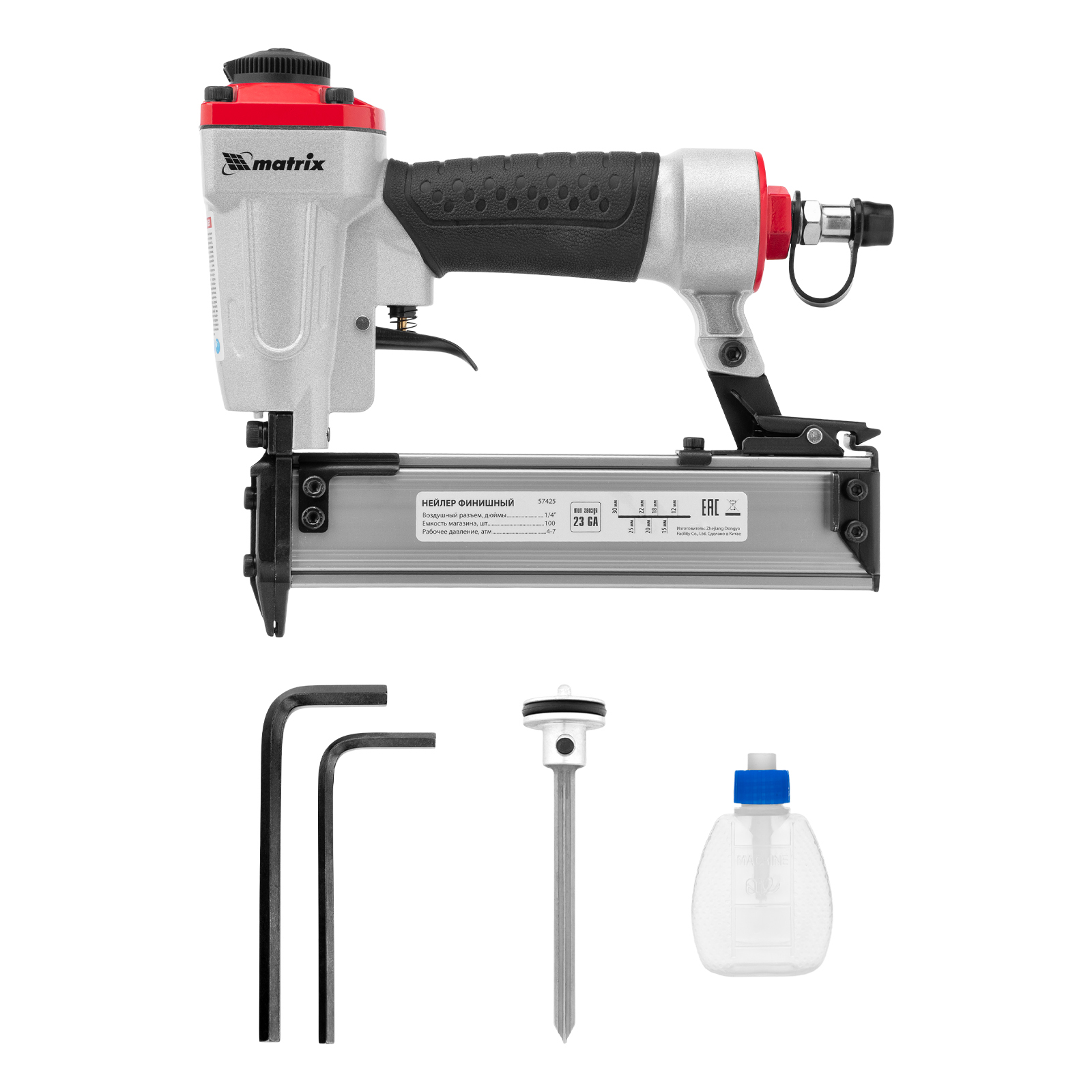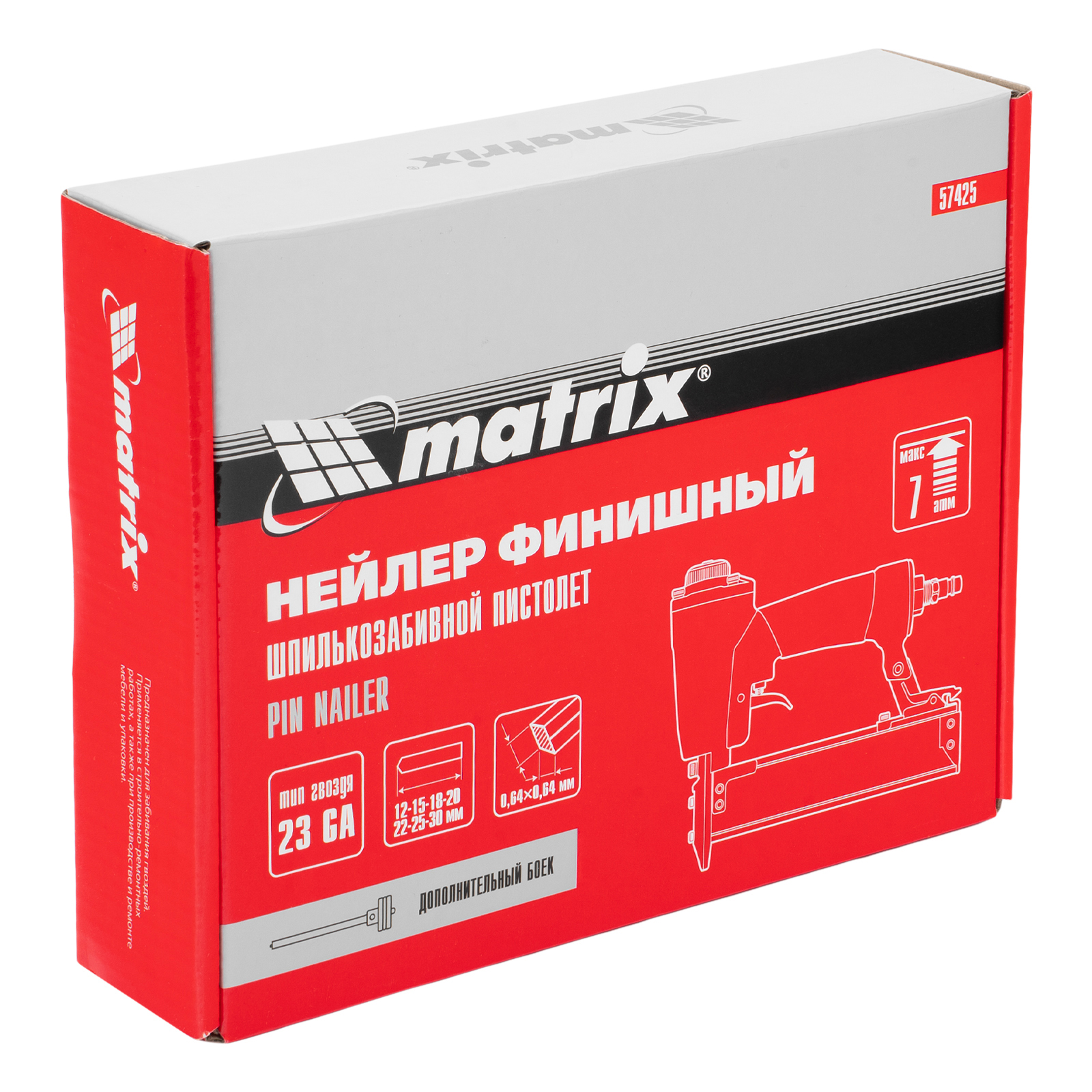 Нейлер финишный, шпилькозабивной пистолет, пневматический, гвоздь 23GA D 0.64 мм длина 10-30 мм Matrix в Москве