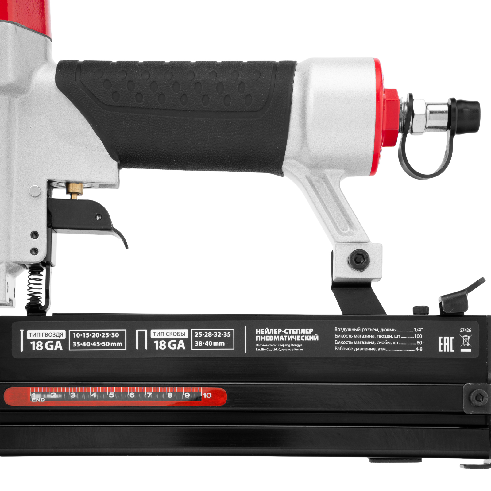 Нейлер-степлер пневматический 2 в 1, гвозди 18GA длина 10-50 мм, скобы 18GA длина 25-40 мм Matrix в Москве