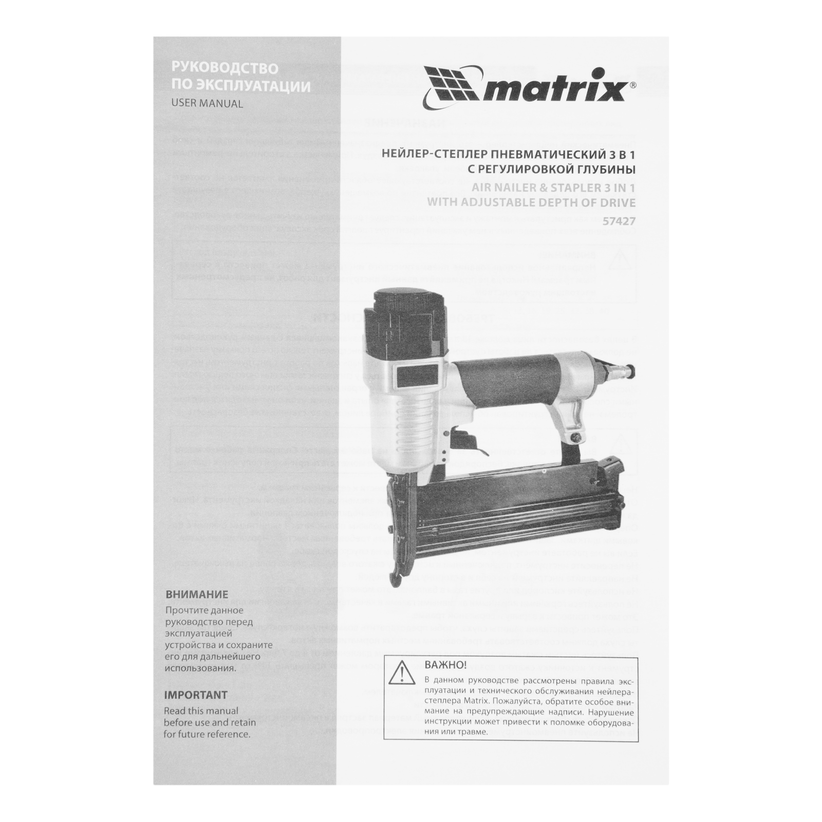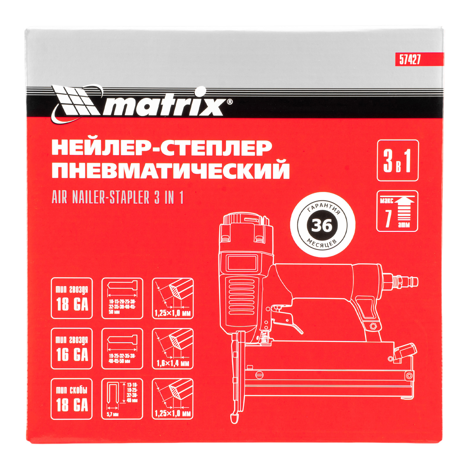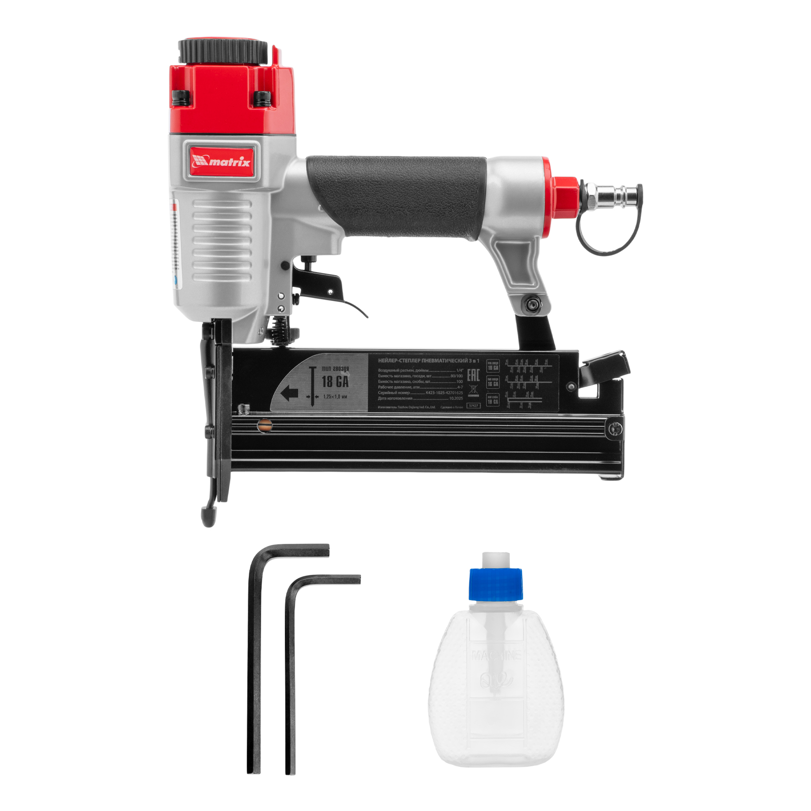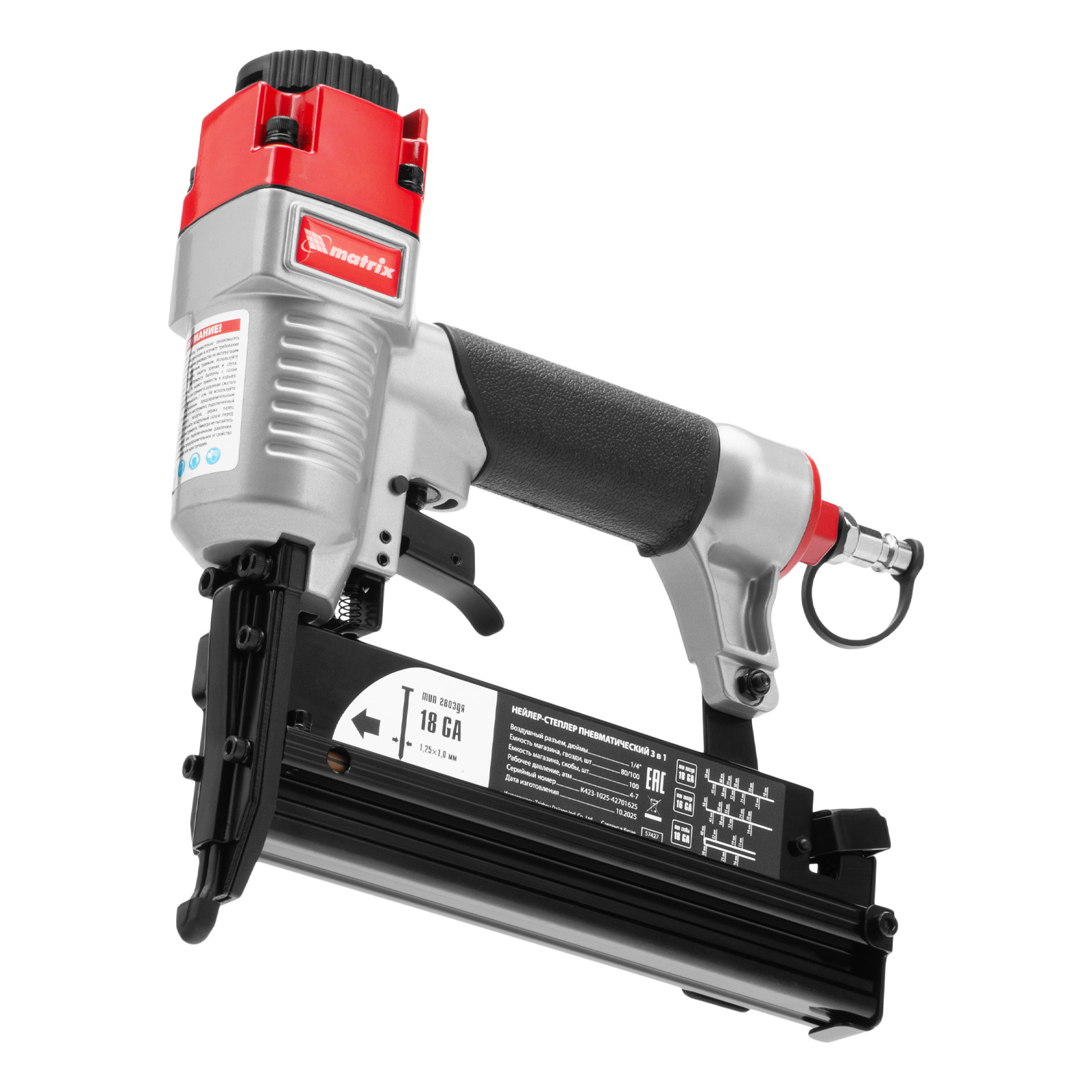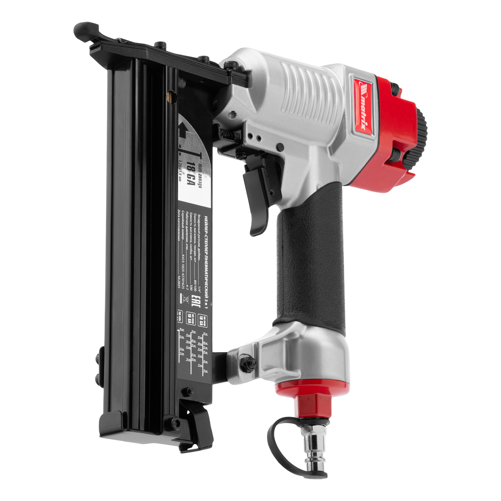 Нейлер-степлер пневматический 3 в 1, с регулировкой глубины забивания, гвозди 18GA, гвозди 16GA, скобы 18 GA Matrix в Москве