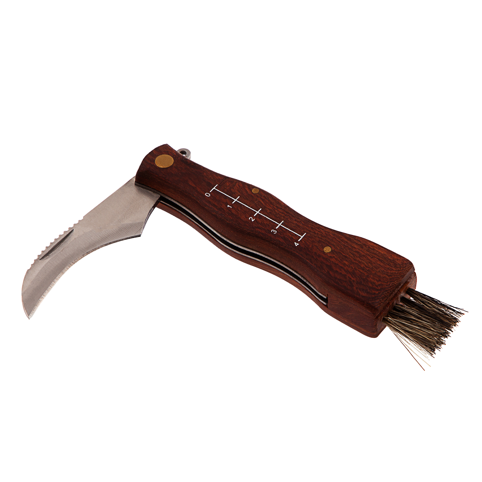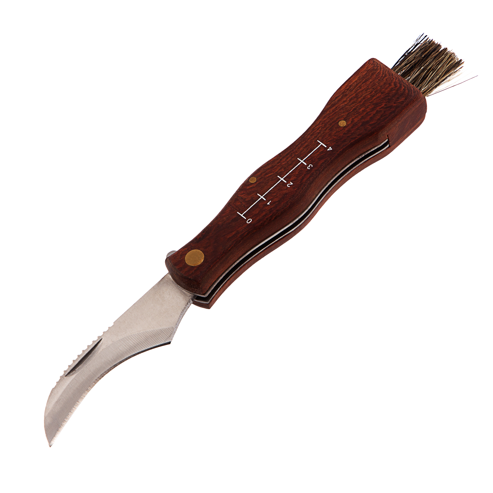 - Специальные зазубрины на верхней кромке лезвия помогают очистить ножки грибов от земли и грязи.