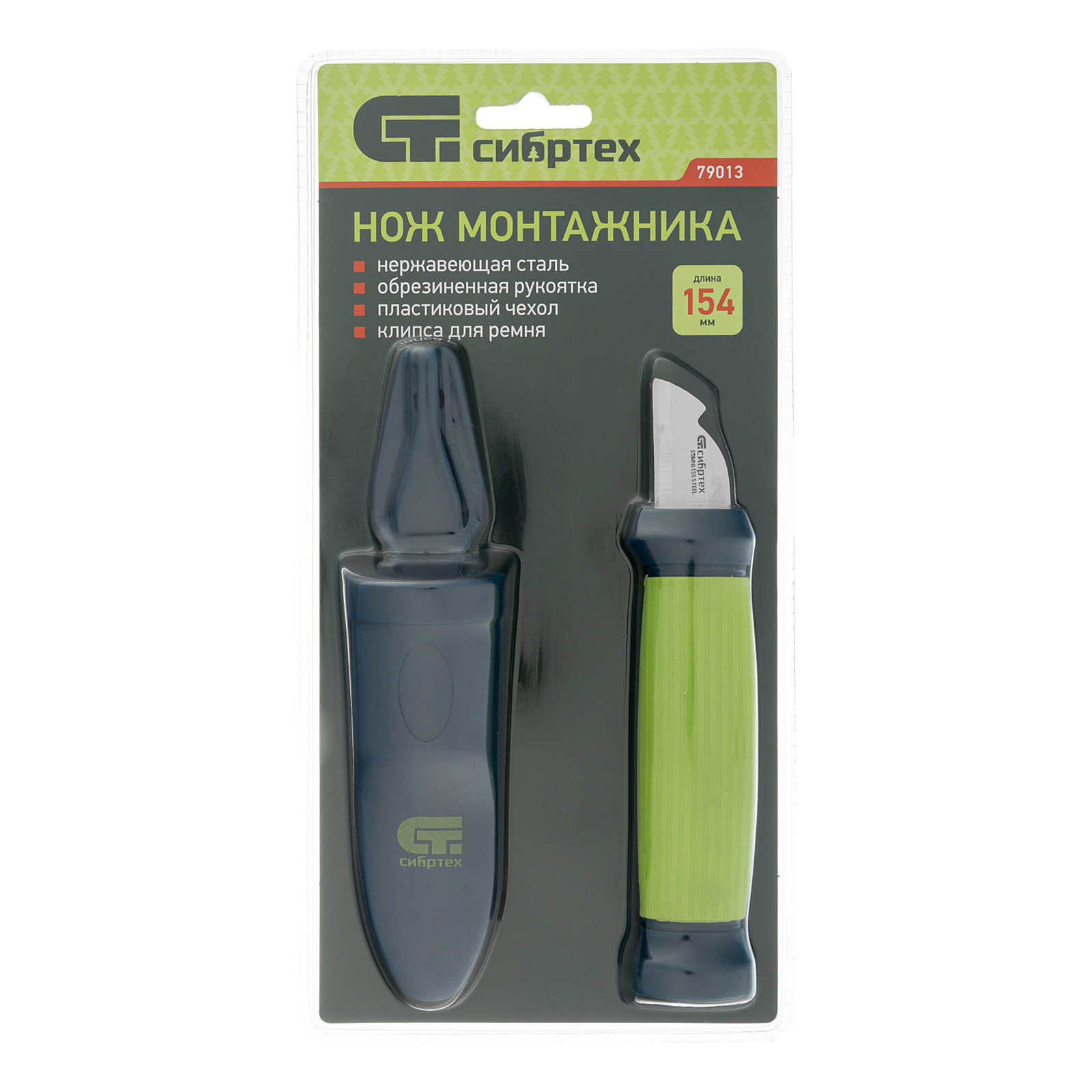 Нож монтажника с чехлом (заточка справа) обрезиненная рукоятка, 154 мм, лезвие 31 мм Сибртех