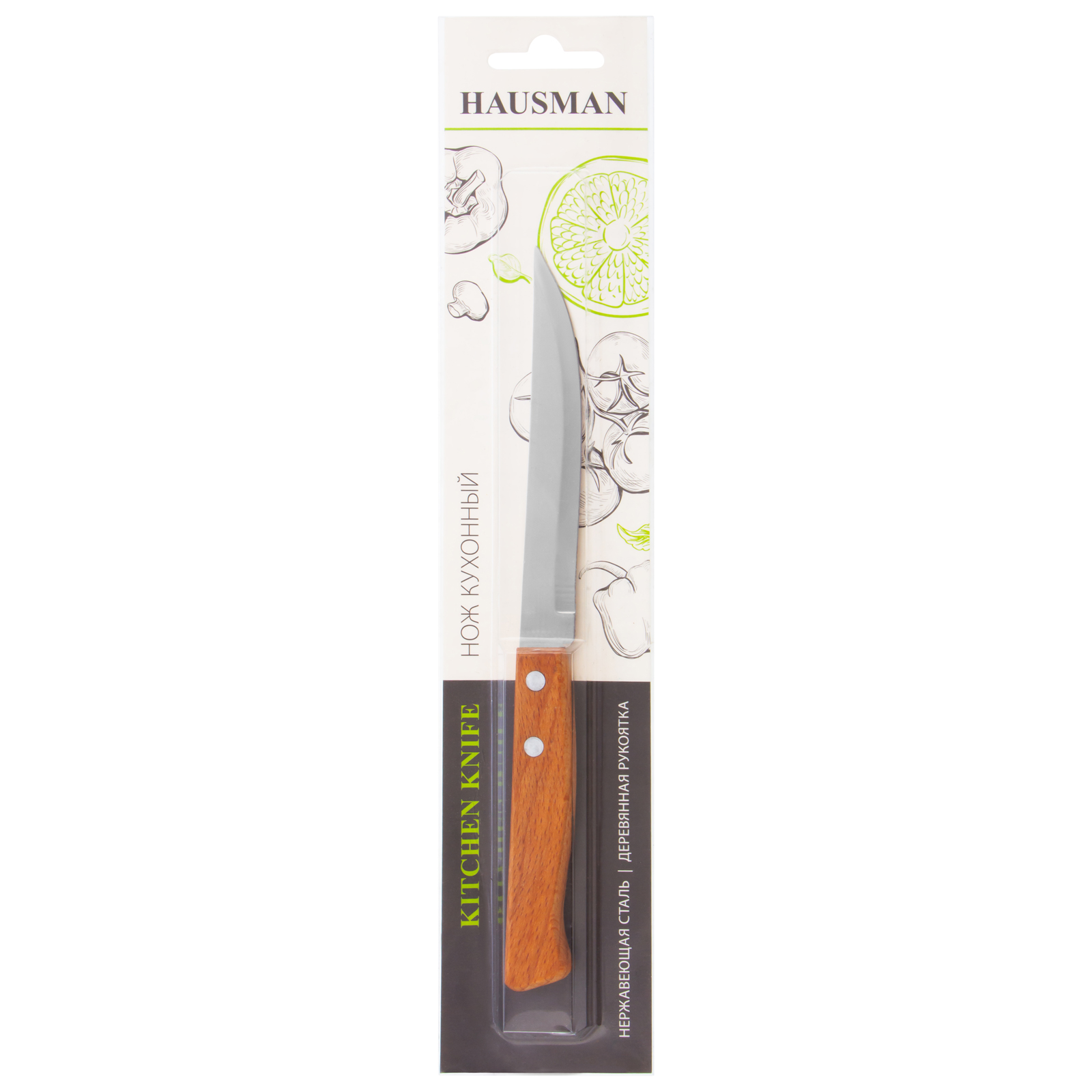 Нож универсальный малый 210 мм, лезвие 115 мм, деревянная рукоятка Hausman