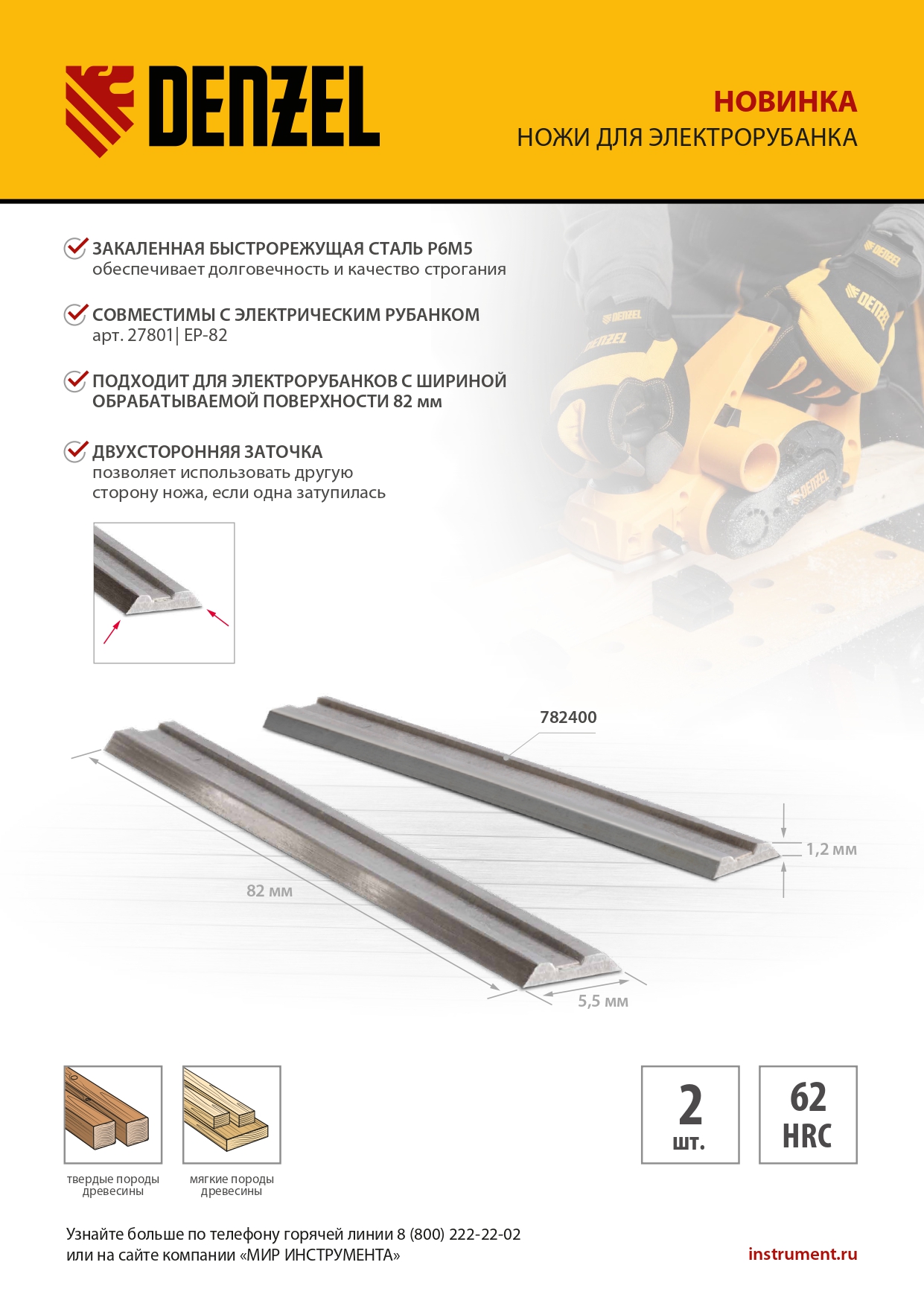 Ножи для эл. рубанка, Р6М5, 82мм, 2шт Denzel