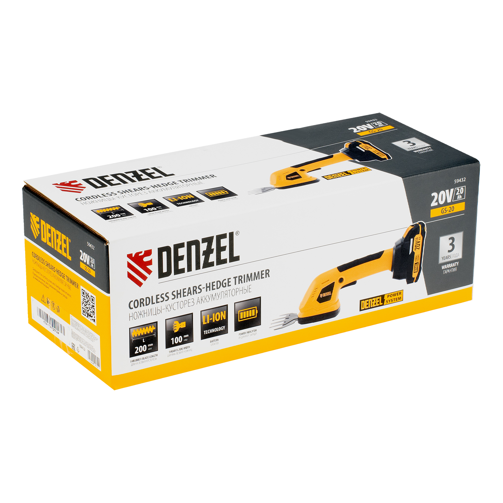 Ножницы-кусторез аккумуляторные GS-20, Li-Ion, 20 В Denzel